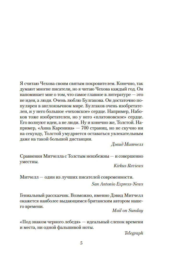 "„Под знаком черного лебедя" – идеальный слепок времени и места, ни одной фальшивой ноты" (Telegraph).