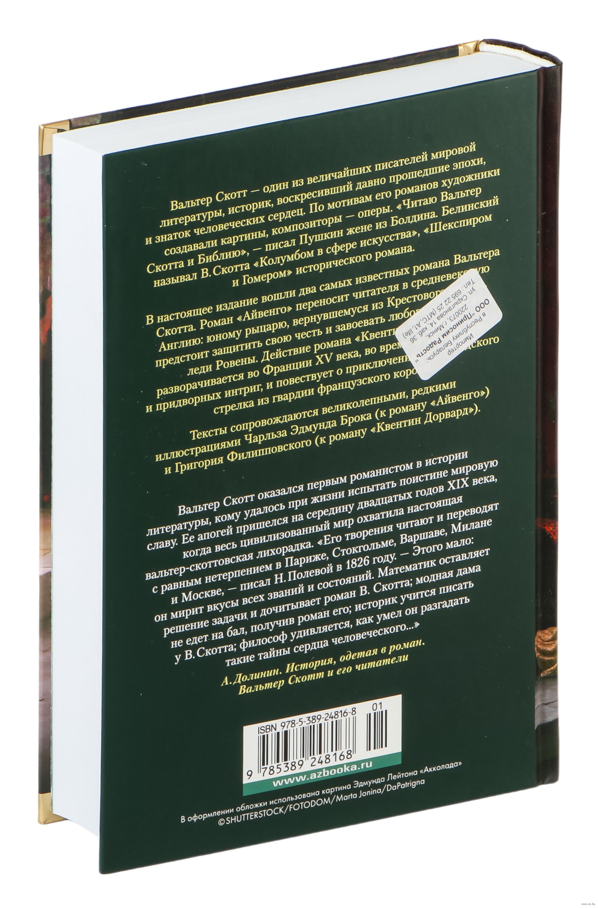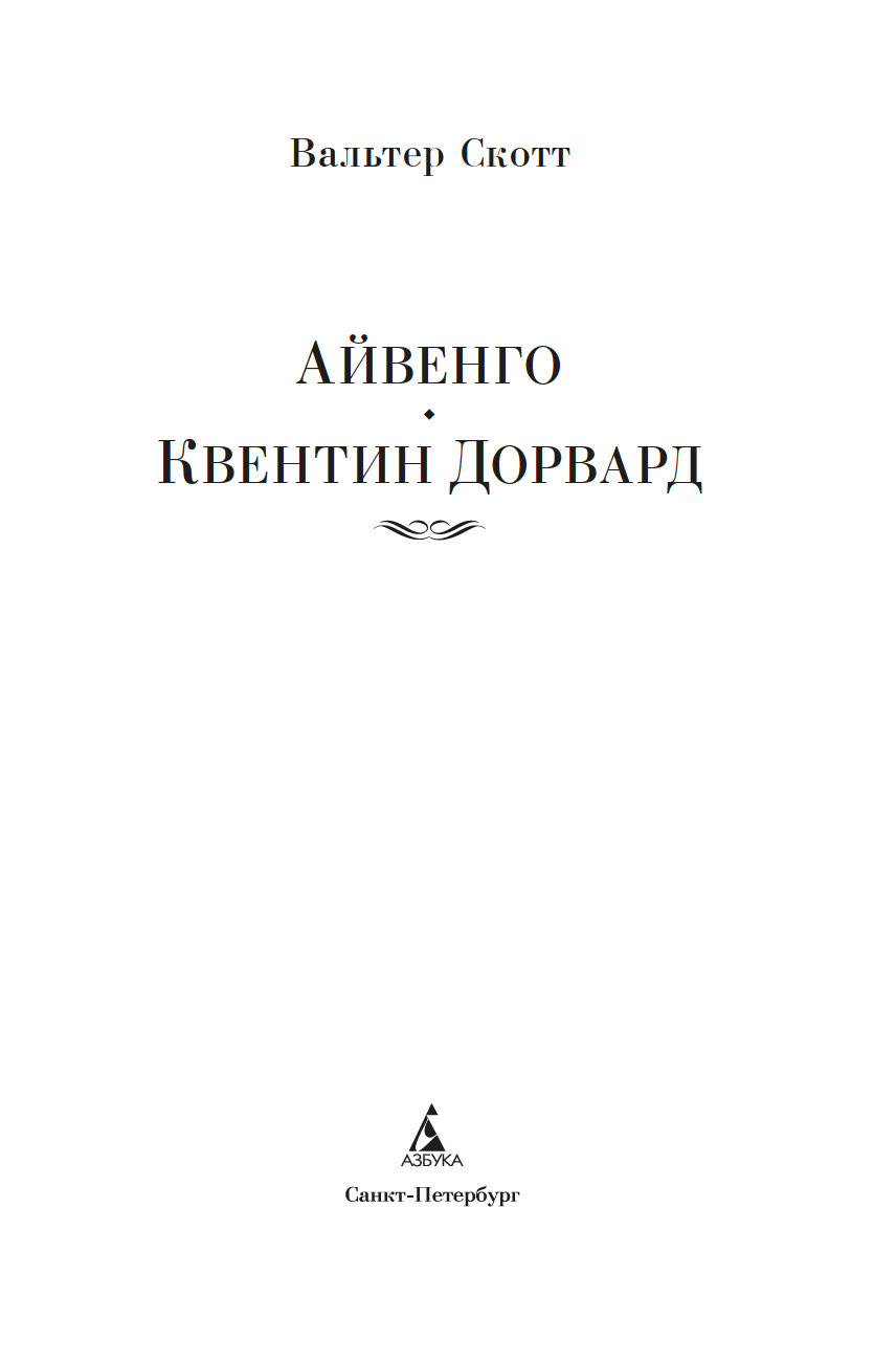 В настоящее издание вошли два самых известных романа Вальтера Скотта. Роман "Айвенго" переносит читателя в средневековую Англию: юному рыцарю, вернувшемуся из Крестового похода, предстоит защитить свою честь и завоевать любовь прекрасной леди Ровены. Действие романа "Квентин Дорвард" разворачивается во Франции XV века, во времена долгих войн и придворных интриг, и повествует о приключениях шотландского стрелка из гвардии французского короля.
