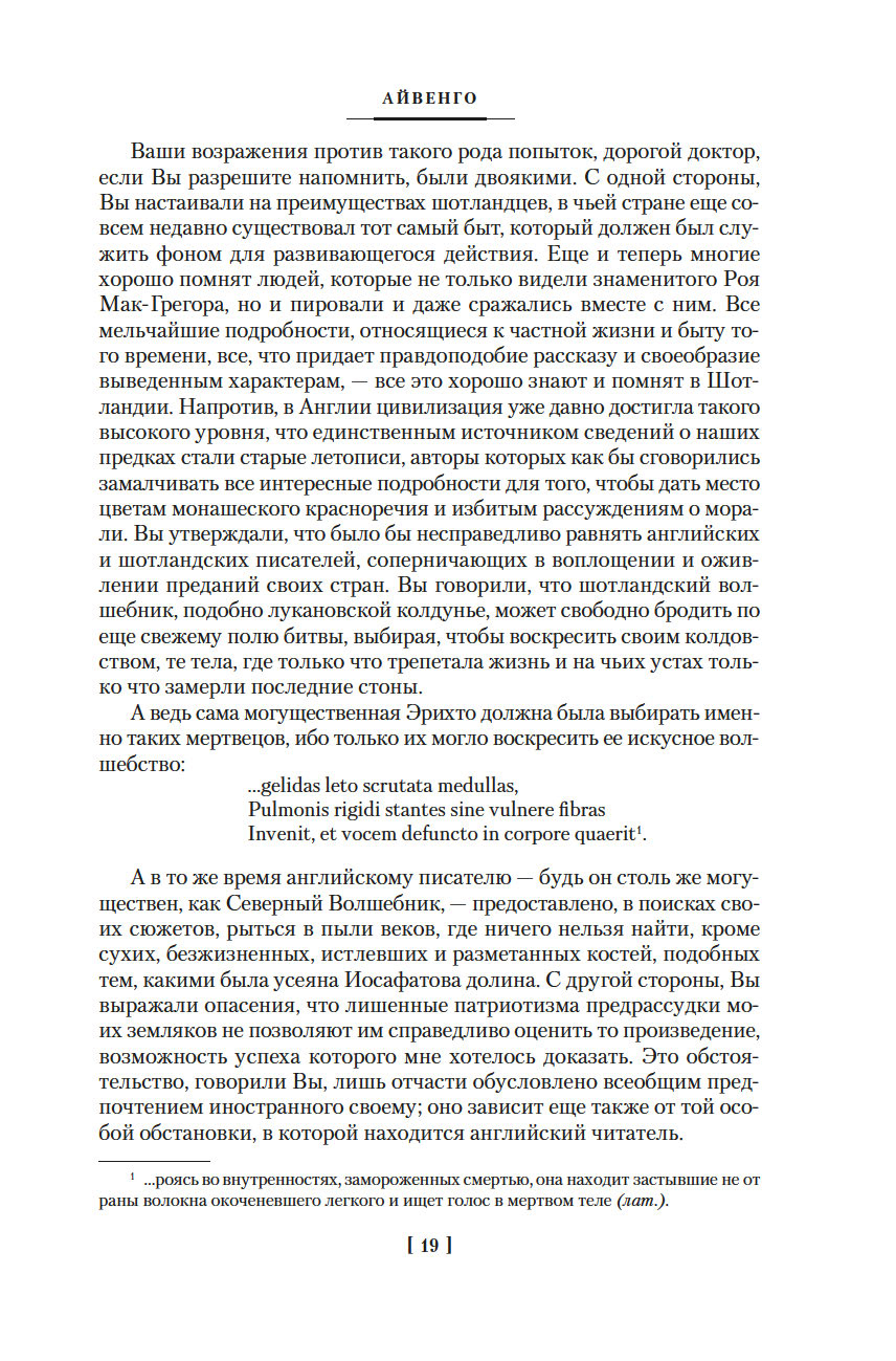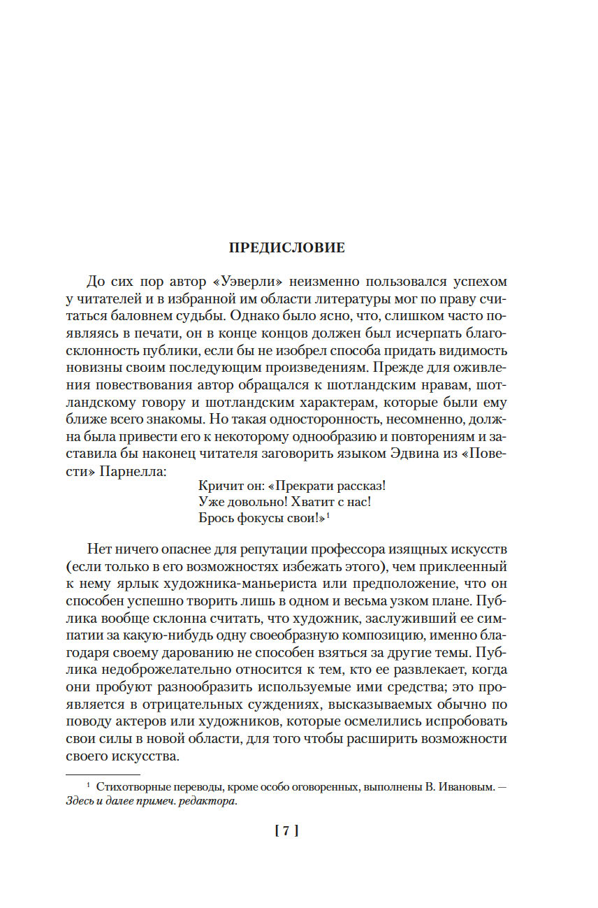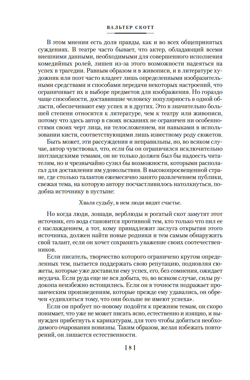 Вальтер Скотт – один из величайших писателей мировой литературы, историк, воскресивший давно прошедшие эпохи, и знаток человеческих сердец. По мотивам его романов художники создавали картины, композиторы – оперы. "Читаю Вальтер Скотта и Библию", – писал Пушкин жене из Болдина. Белинский называл В. Скотта "Колумбом в сфере искусства", "Шекспиром и Гомером" исторического романа.