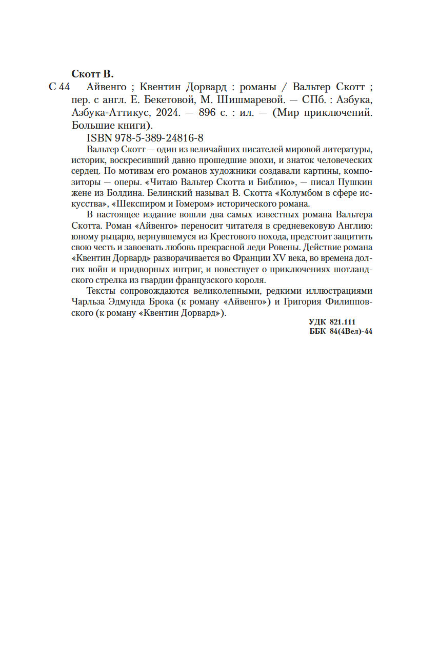 | Название в оригинале | Ivanhoe. Quentin Durward |
