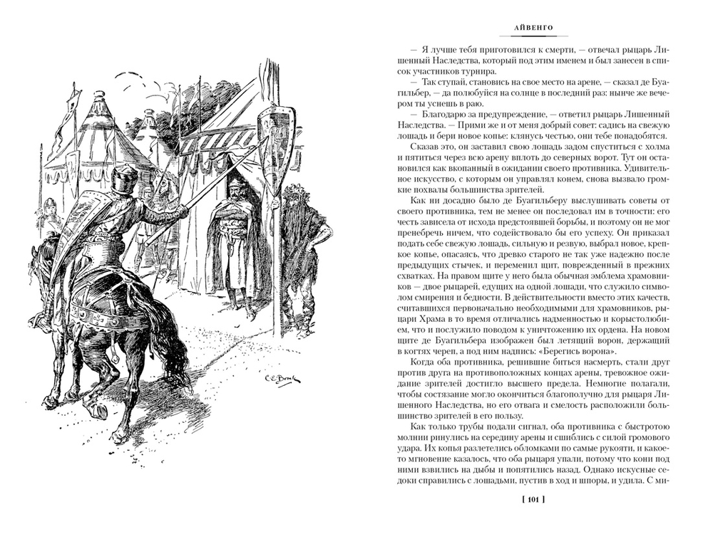 Тексты сопровождаются великолепными, редкими иллюстрациями Чарльза Эдмунда Брока (к роману "Айвенго") и Григория Филипповского (к роману "Квентин Дорвард").