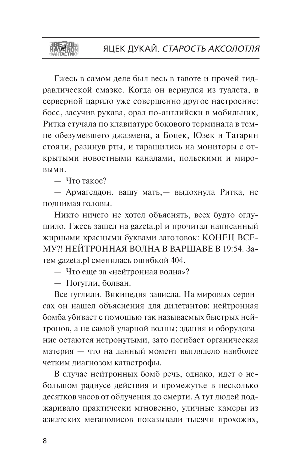 Все это и многое другое ждет вас в сборнике небольших романов и повестей "Старость аксолотля", который завораживает пейзажами невероятной, странной красоты и уникальностью по-настоящему сложных, но притягательных миров.