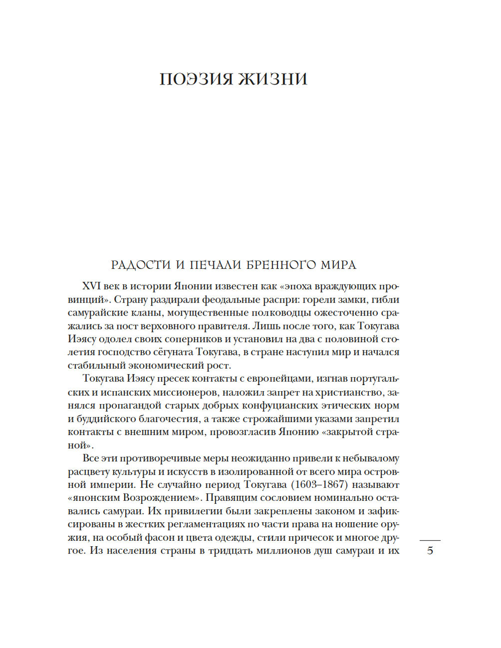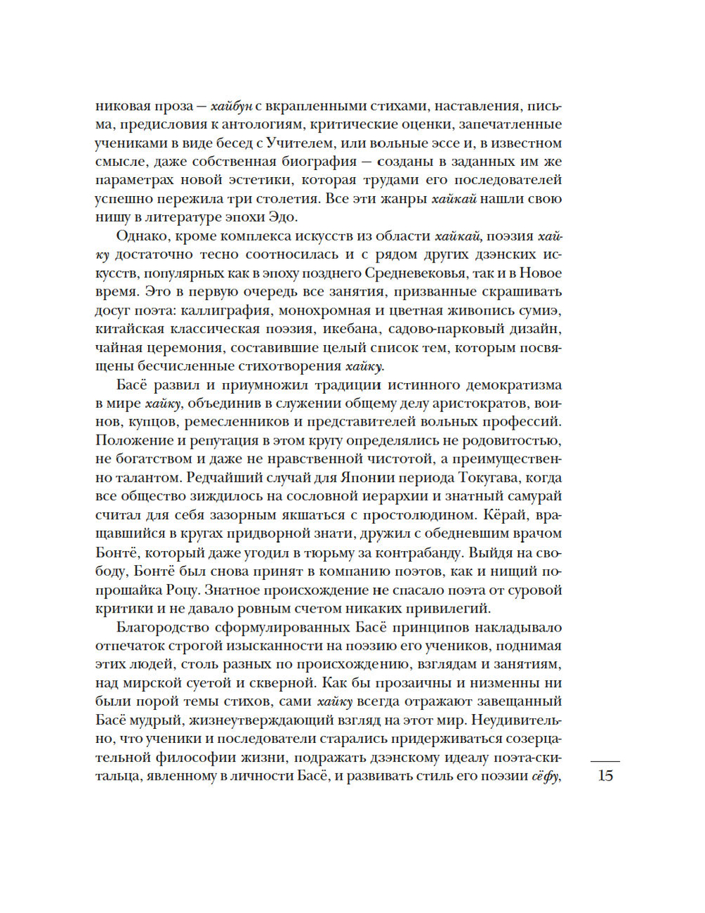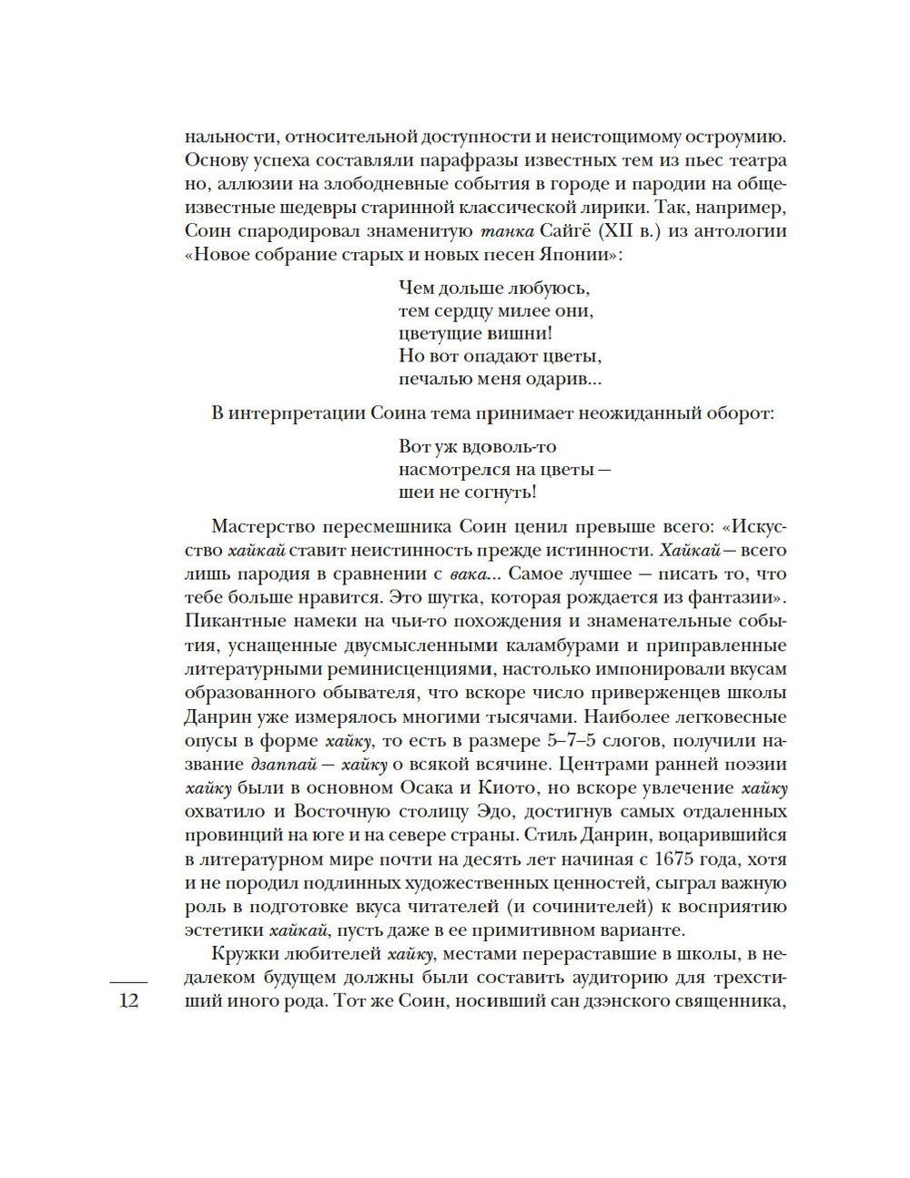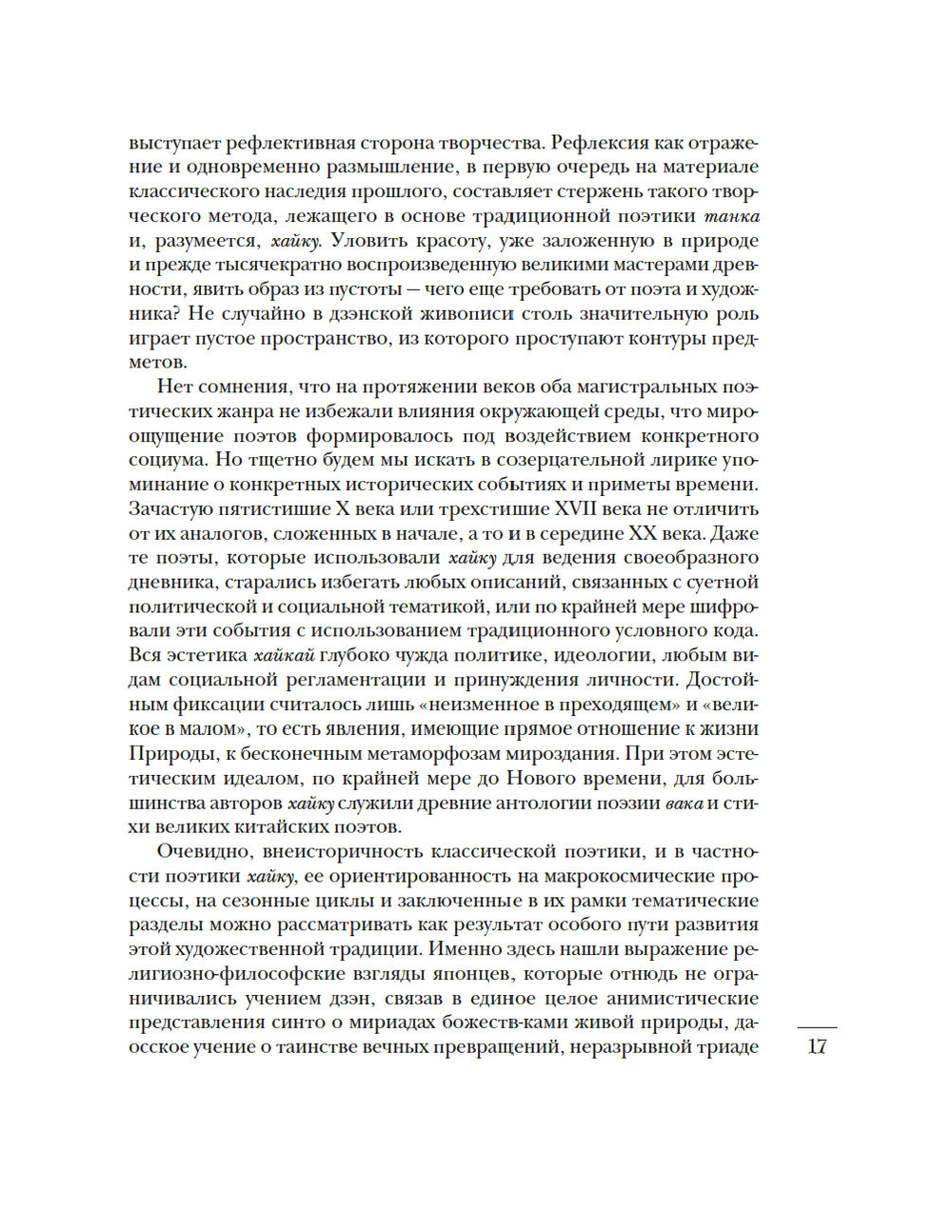 Утонченная и немногословная японская поэзия хайку всегда была отражением мира природы, воплощенного в бесконечной смене времен года. Человек, живущий обыденной жизнью, чьи пять чувств настроены на постоянное восприятие красоты земли и неба, цветов и трав, песен цикад и солнечного тепла, – вот лирический герой жанра, объединяющего поэзию, живопись и каллиграфию. Авторы хайку создали своего рода поэтический календарь, в котором отводилось место для разнообразных растений и животных, насекомых, птиц и рыб, для бытовых зарисовок и праздников.