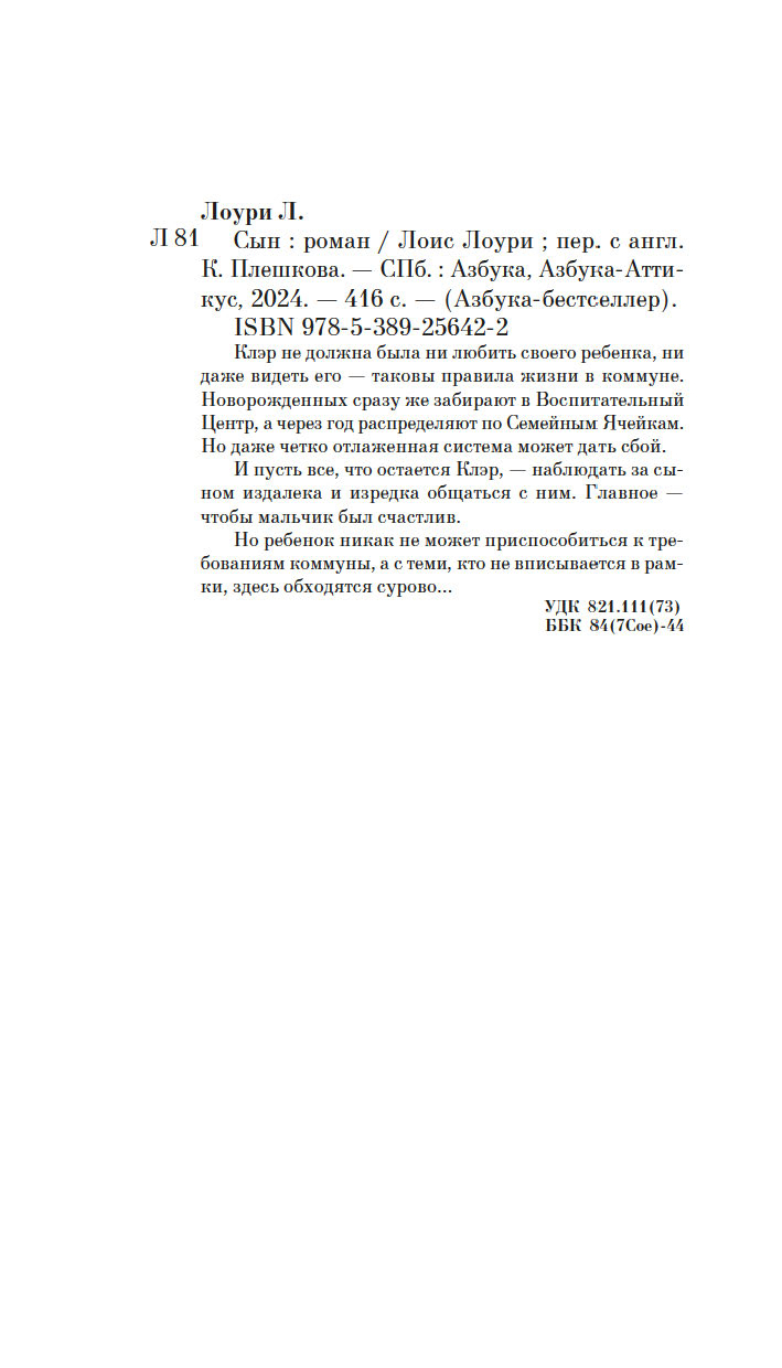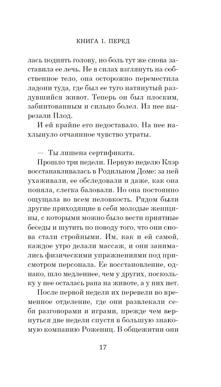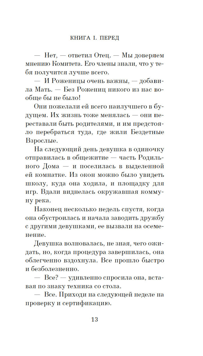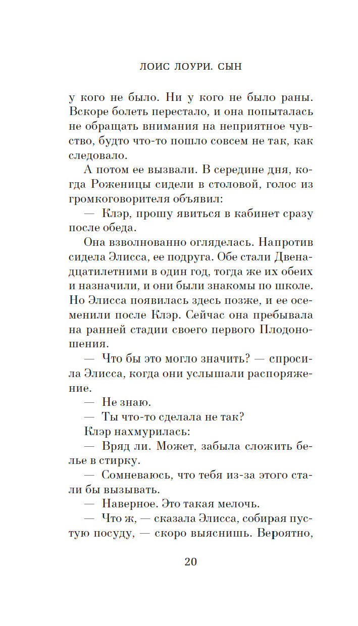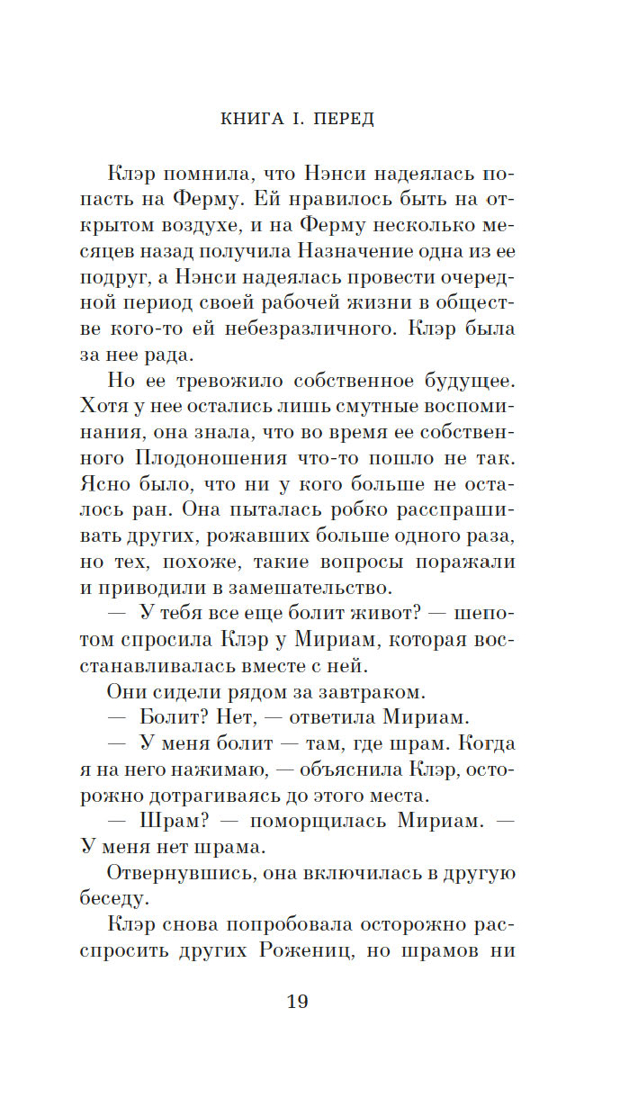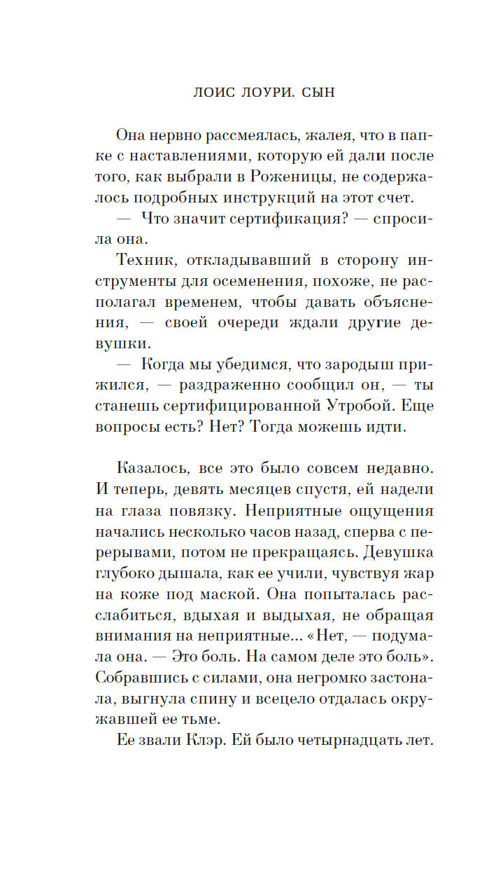 Клэр не должна была ни любить своего ребенка, ни даже видеть его – таковы правила жизни в коммуне. Новорожденных сразу же забирают в Воспитательный Центр, а через год распределяют по Семейным Ячейкам. Но даже четко отлаженная система может дать сбой.