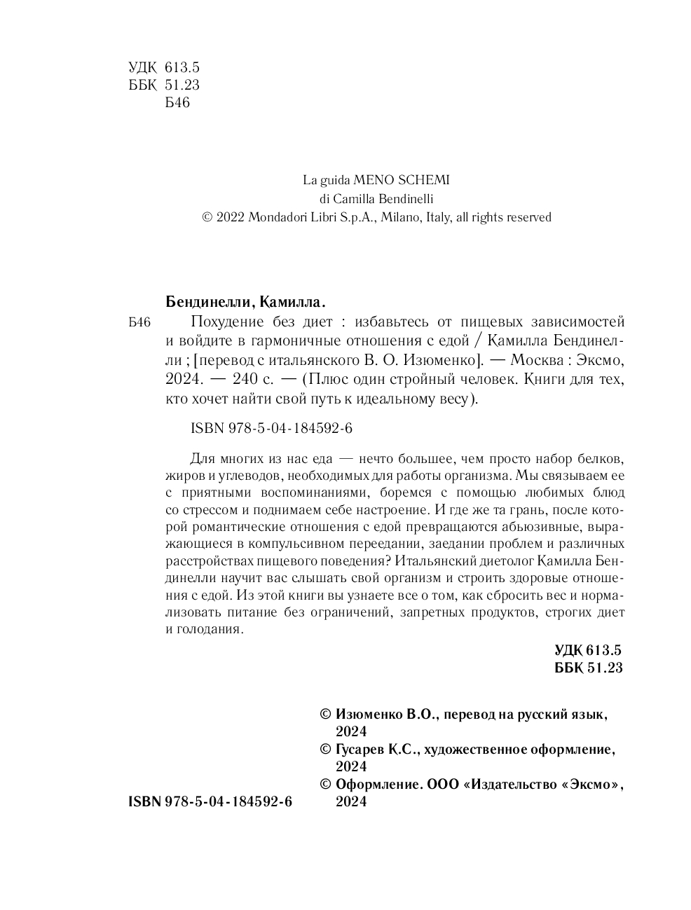 | Название в оригинале | La Guida Meno Schemi. Come Interrompere Il Circolo Vizioso Delle Diete E Ritrovare Un Rapporto Equilibrato Con Il Cibo |