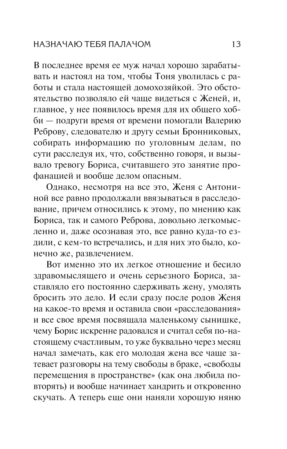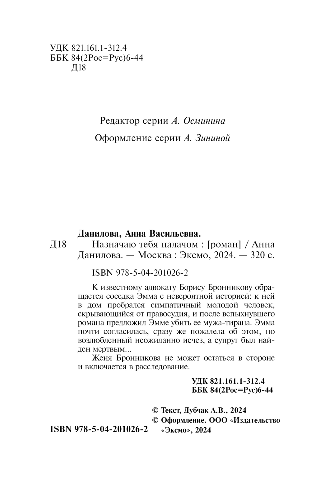 В этот раз известному адвокату Борису Бронникову предстоит помочь соседке Эмме, чей муж-тиран погибает при обстоятельствах, подозрительно похожих на убийство. Кто же виноват – молодой человек, скрывавшийся в доме Эммы от правосудия и пообещавший спасти возлюбленную от мучителя, или все гораздо сложнее?