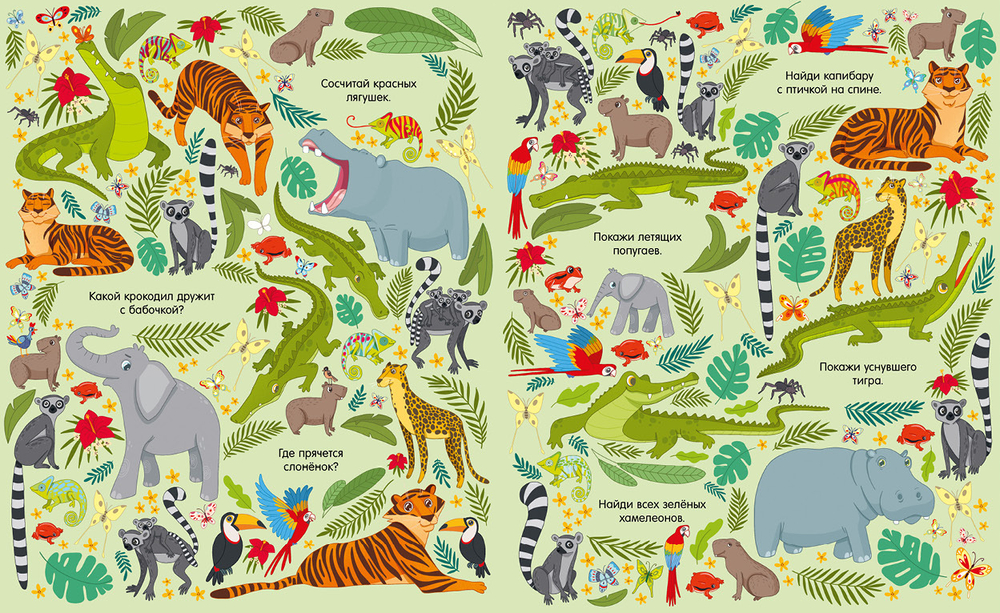 Большая познавательная книга расскажет малышу о животных: какими они бывают, что любят и где живут. Рассматривайте яркие иллюстрации, играйте и выполняйте задания для развития памяти и внимания.