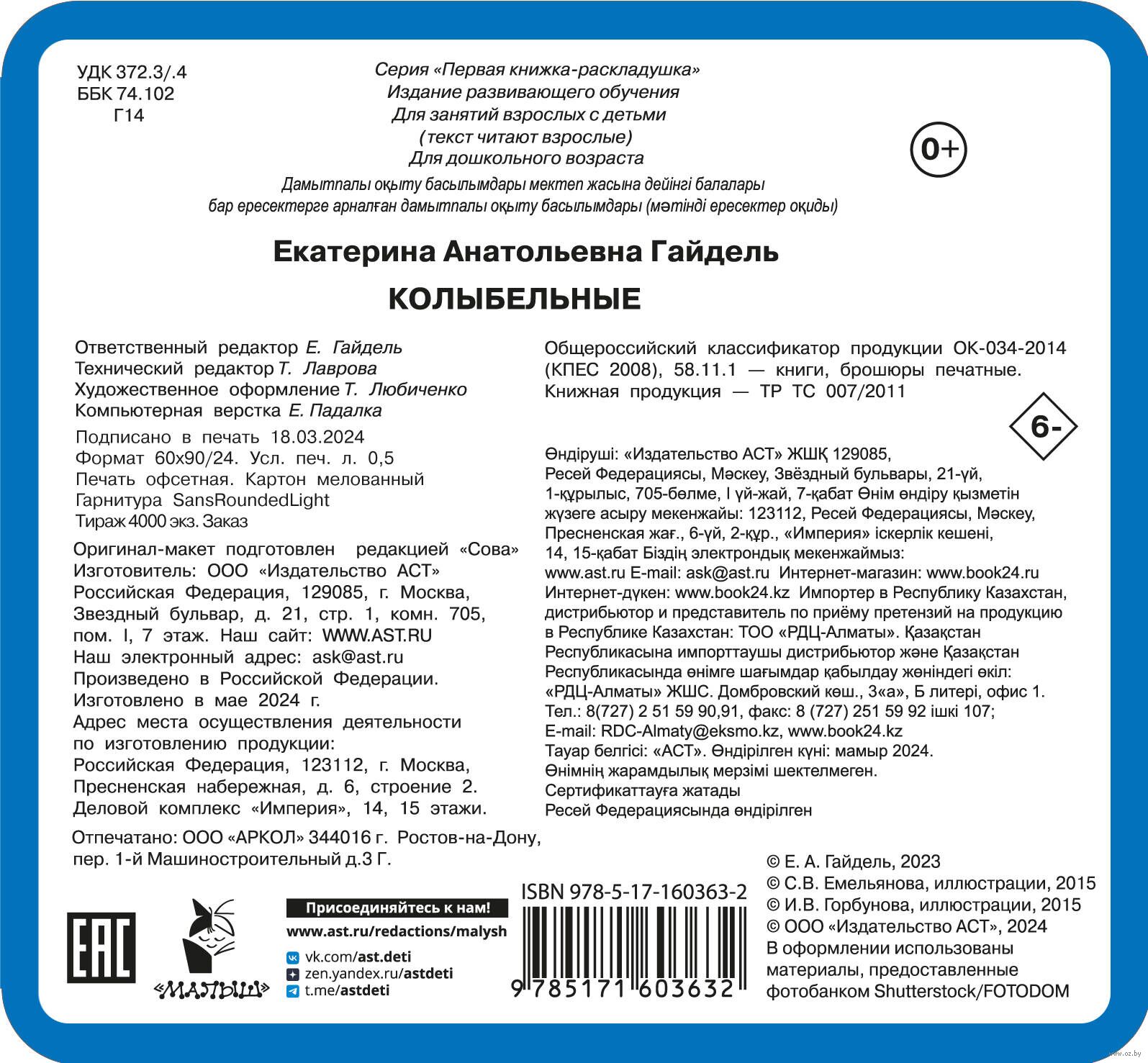 | Изготовитель | Творческое кооперативное объединение «АСТ». 129085, РФ, г. Москва, б-р Звездный, 21, стр. 1 |