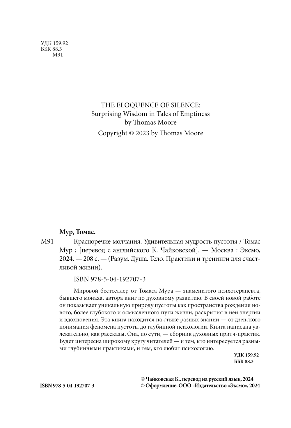 | Название в оригинале | The Eloquence Of Silence: Surprising Wisdom In Tales Of Emptiness |