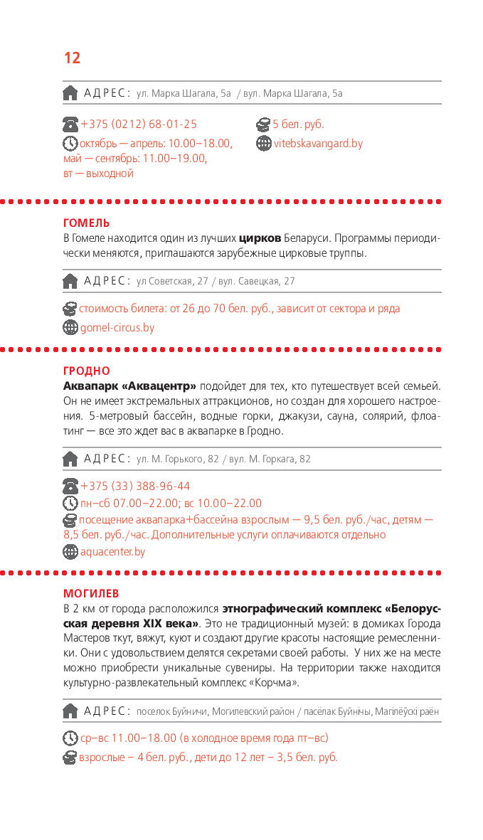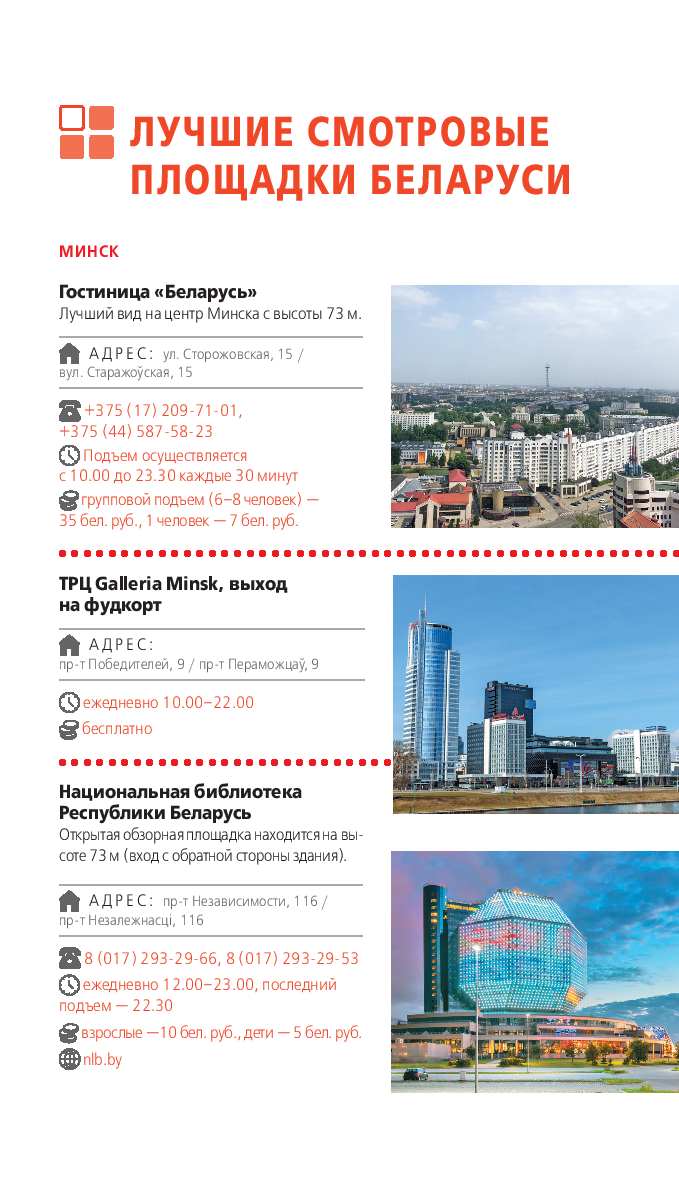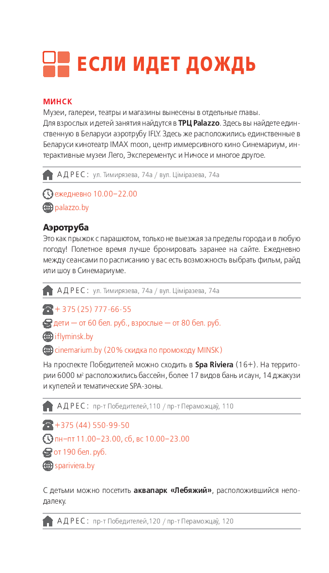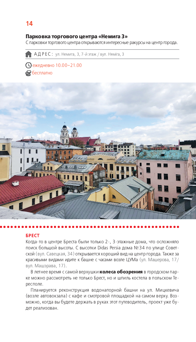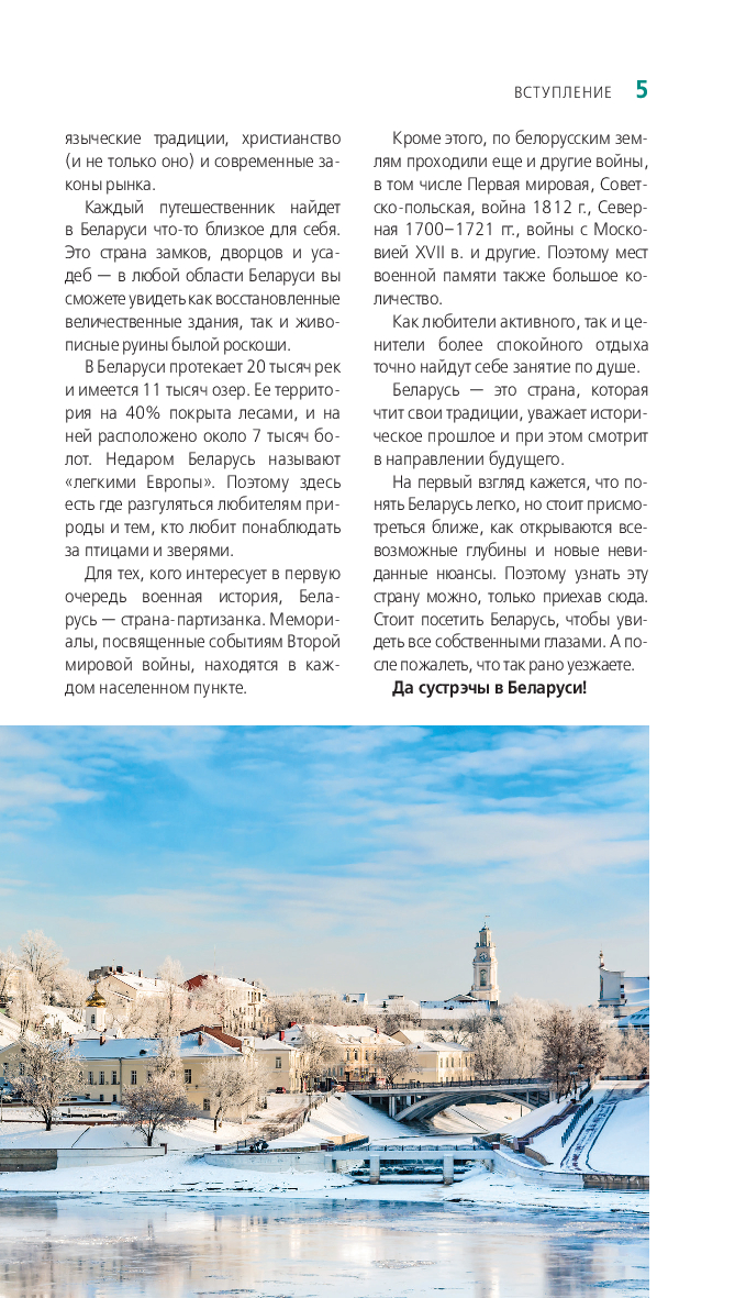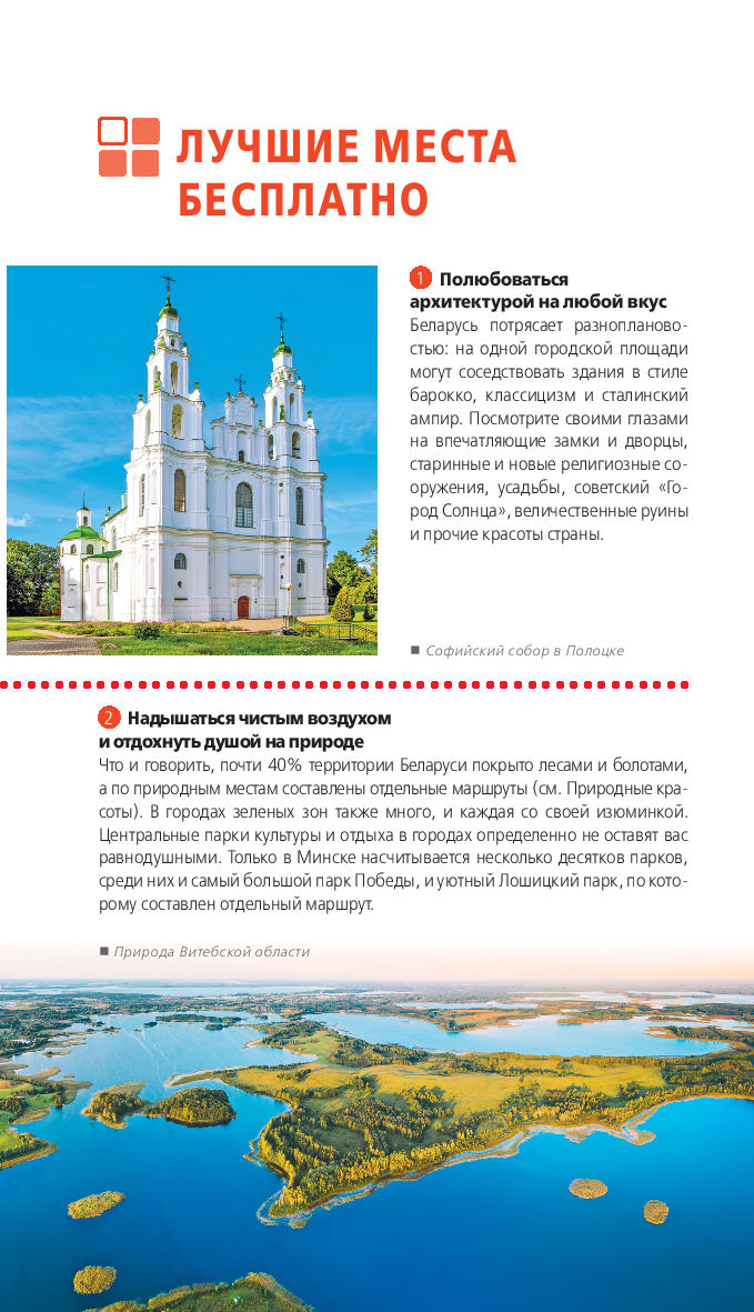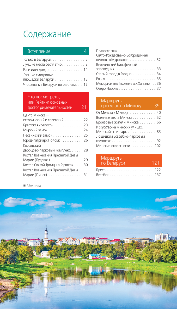 В нем содержится актуальная и полезная информация о главных городах страны, различные маршруты на любой вкус, подсказки, что делать, если идет дождь, или где искать лучшие смотровые площадки, а также множество полезных авторских советов. Вас ждут прогулки по Минску, Бресту, Витебску, Гомелю, Гродно, Могилеву, а также информация про самые красивые замки, храмы и заповедники. Осталось только выбрать маршрут на свой вкус! Сориентироваться на местности помогут удобные карты, расположенные на страницах путеводителя.
