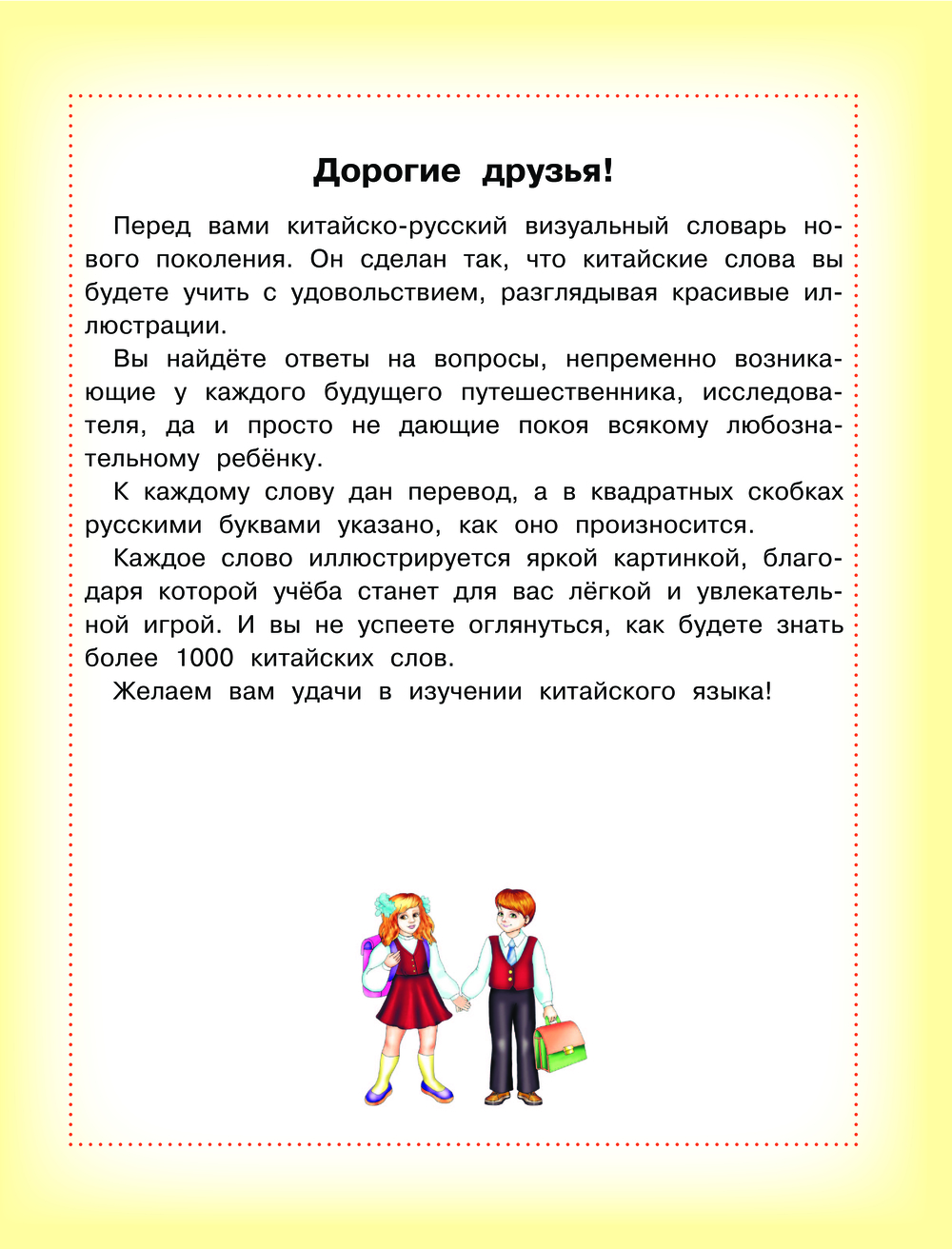 Настоящий словарь содержит более 1200 китайских слов с переводом и транскрипцией русскими буквами. Вас ждут 17 интересных тем: животные, растения, искусство, книги, еда, напитки, окружающая среда, люди, повседневная жизнь, музыка, телевидение, транспорт, дом, спорт, досуг, активный отдых и туризм, а также приложение, где можно найти еще больше слов, относящихся к окружающему миру!