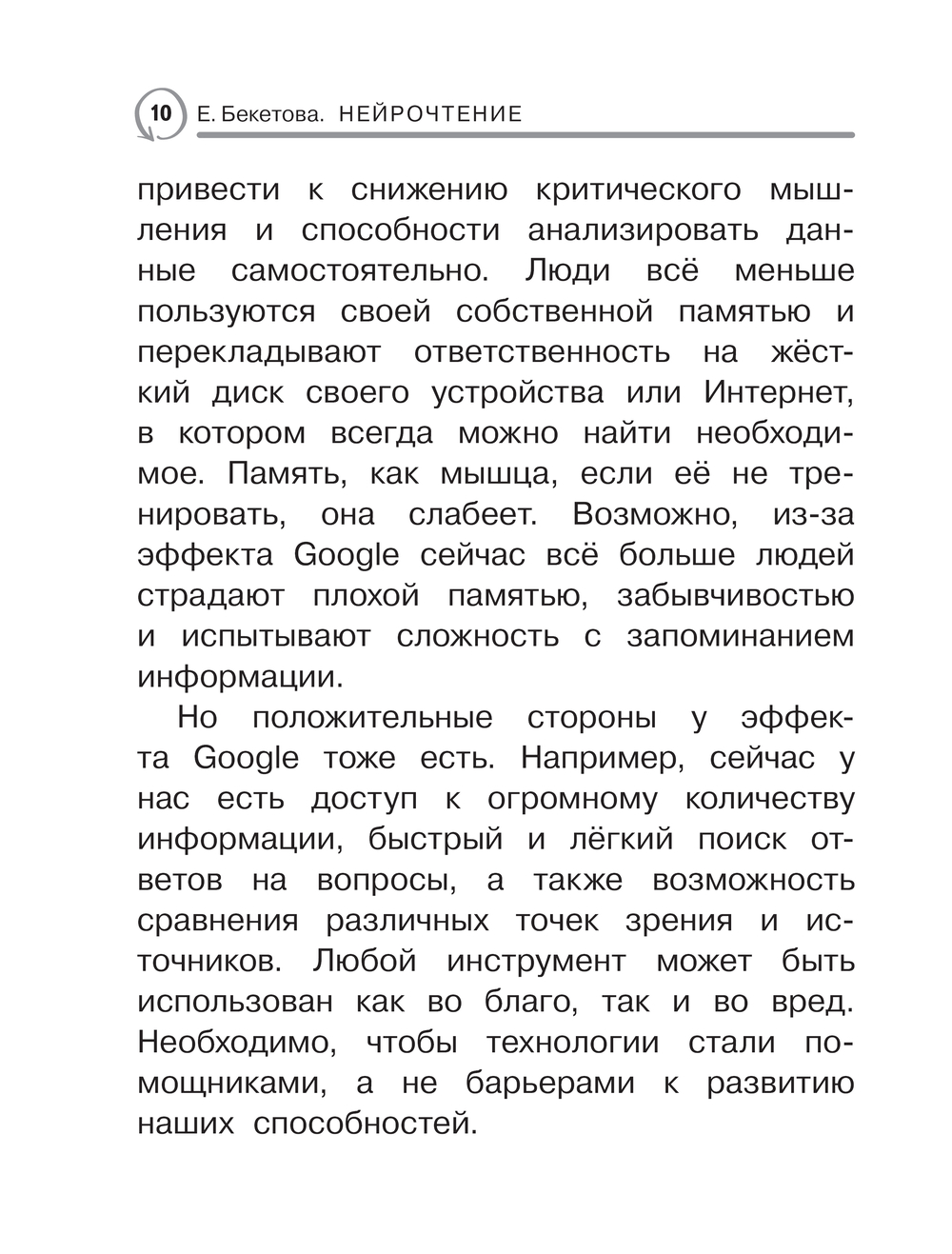 Читать не только интересно, но и полезно! Этот навык улучшает работу мозга, повышает уровень интеллекта. В книге представлена авторская методика нейрочтения Евгении Бекетовой – педагога, психолога и опытного брейн-тренера. Система увлекательных упражнений позволит всего за месяц значительно увеличить скорость восприятия информации, улучшить понимание прочитанного, а также прокачать память и внимание. Для тех, кто не хочет останавливаться на достигнутом, предусмотрен еще месяц занятий на более сложном уровне. Бонусные задания доступны по QR-коду. Это не просто книга, а ваш личный брейн-тренер!
