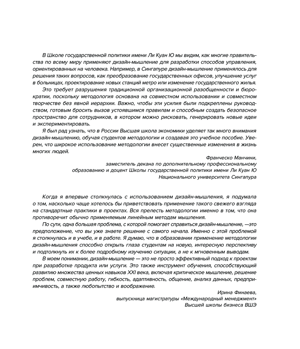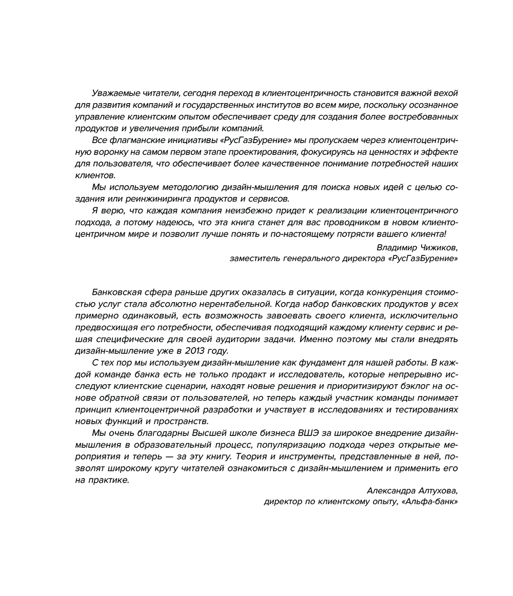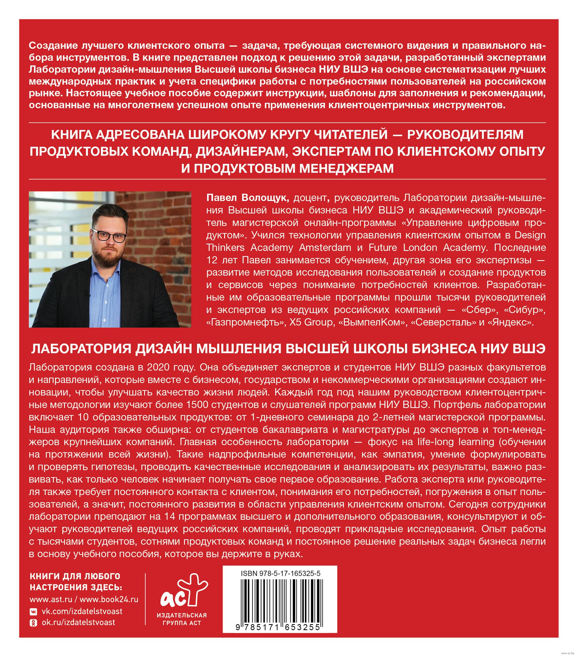Создание лучшего клиентского опыта – задача, требующая системного видения и правильного набора инструментов. В книге представлен подход к решению этой задачи, разработанный экспертами Лаборатории дизайн-мышления Высшей школы бизнеса ВШЭ на основе систематизации лучших международных практик и c учетом специфики работы с потребностями пользователей на российском рынке. Настоящее учебное пособие содержит инструкции, шаблоны для заполнения и рекомендации, основанные на многолетнем успешном опыте применения клиентоцентричных инструментов.