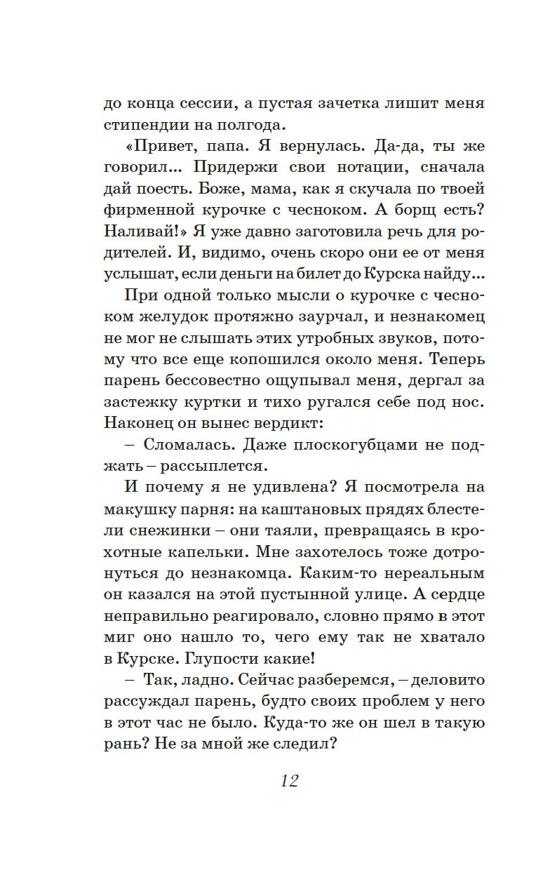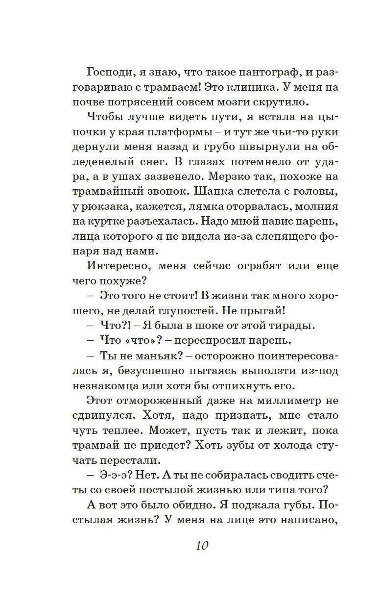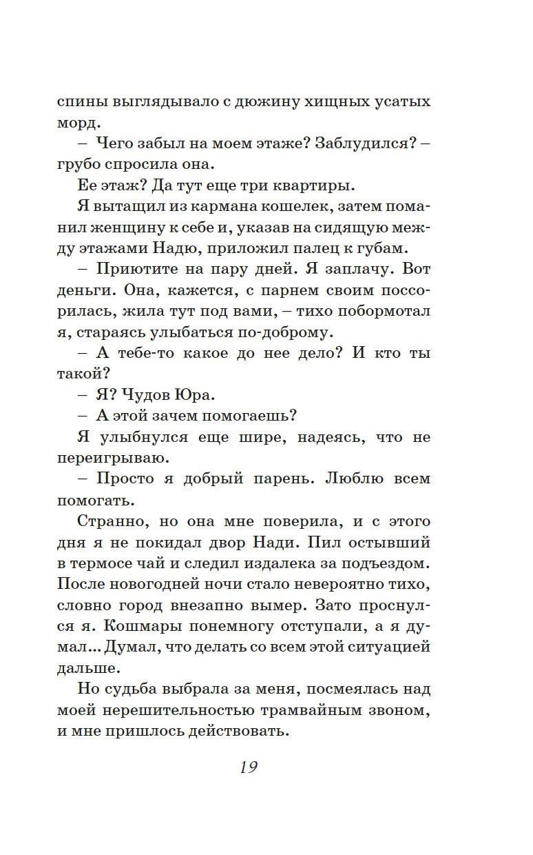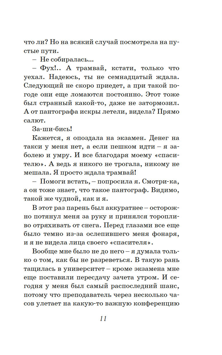Темным морозным утром Надя ждала трамвая и думала о неприятностях, которые свалились на нее в новом году. Но ей и в голову не могло прийти, что встреча на остановке с настырным и странным Юрой изменит ее жизнь. Неожиданный знакомый вызывает у Нади недоумение, но чем больше она узнаетего, тем острее чувствует – он что-то скрывает. Действительно ли их свел вместе случай? Что связывает Юру и Надю?