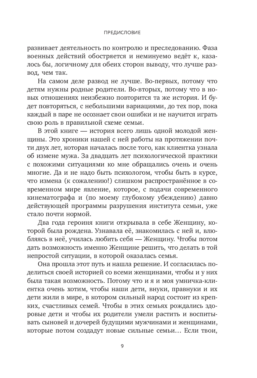 В этой книге психолог с 20-летним стажем Светлана Рябова рассказывает о подлинной, а не стереотипной женской мудрости. Аля, клиентка Светланы, смогла сделать брак счастливым после удара, способного разрушить самый крепкий союз, – измены мужа. На примере глубокой работы с Алей психолог вскрывает механизмы взаимодействия мужчины и женщины в семье и демонстрирует, как строить отношения, основанные на взаимном уважении и восхищении.