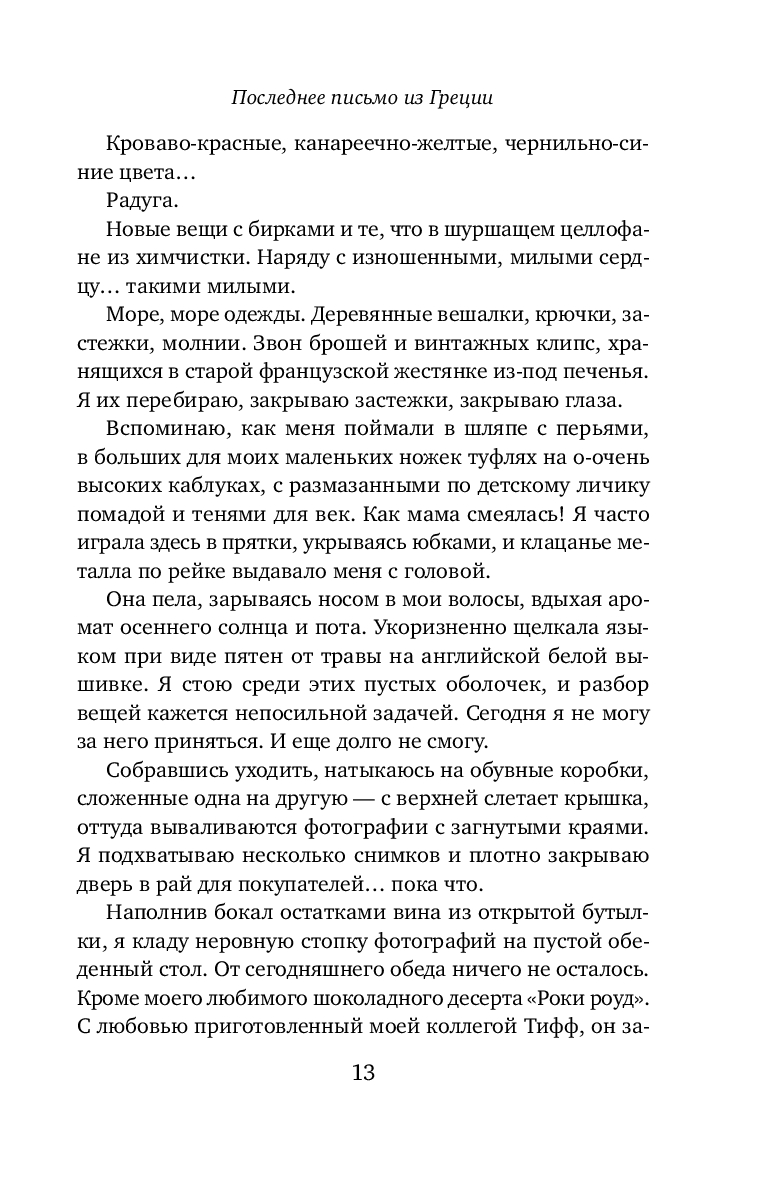 Софи – единственная наследница знаменитой художницы Линдси Кинлок. Разбирая вещи матери, она находит фотокопию картины. Это греческий пейзаж, на переднем плане одинокая мужская фигура. Кто это незнакомец? Кому посвящена надпись на обороте снимка?