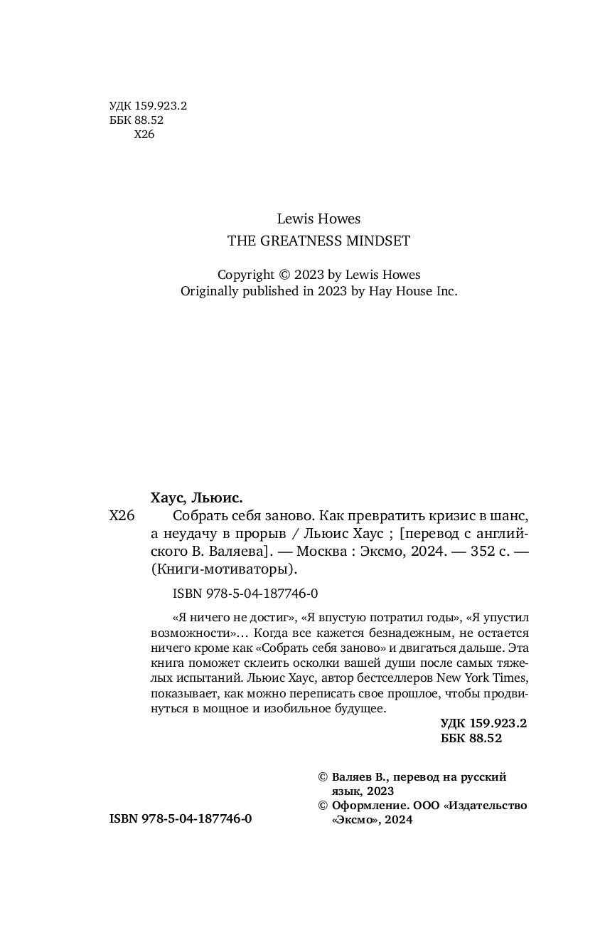 | Название в оригинале | The Greatness Mindset: Unlock the Power of Your Mind and Live Your Best Life Today |
