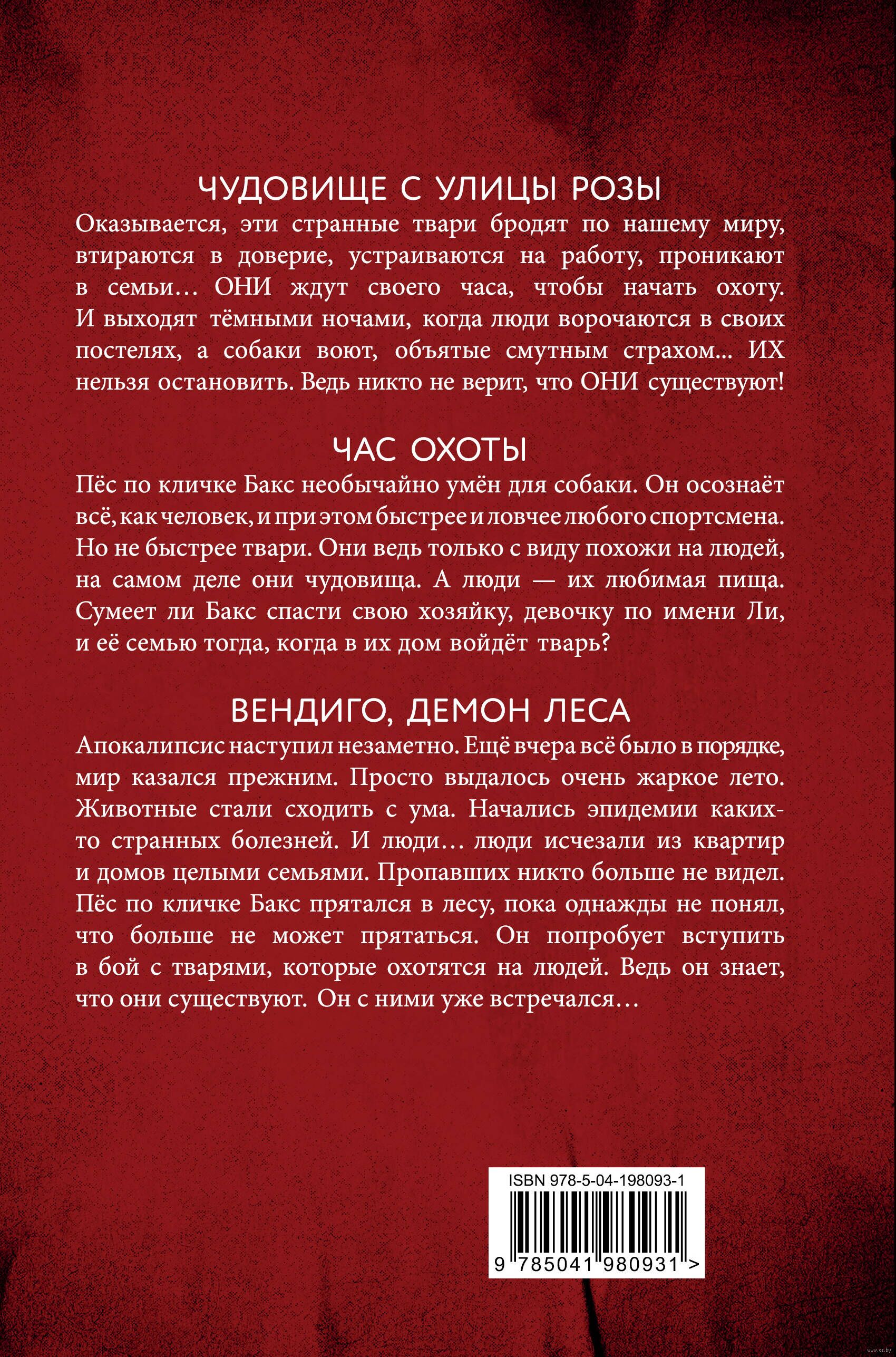 Сборник Эдуарда Веркина – три страшных истории о хищных лесных людях, вендиго, и о тех, кто способен бороться с ними и победить. Повести "Чудовище с улицы Розы", "Час охоты" и "Вендиго, демон леса" стали классикой ужастиков, а точнее, триллеров для подростков. Они объединены общим героем, псом по кличке Бакс. Впервые выходят под одной обложкой.