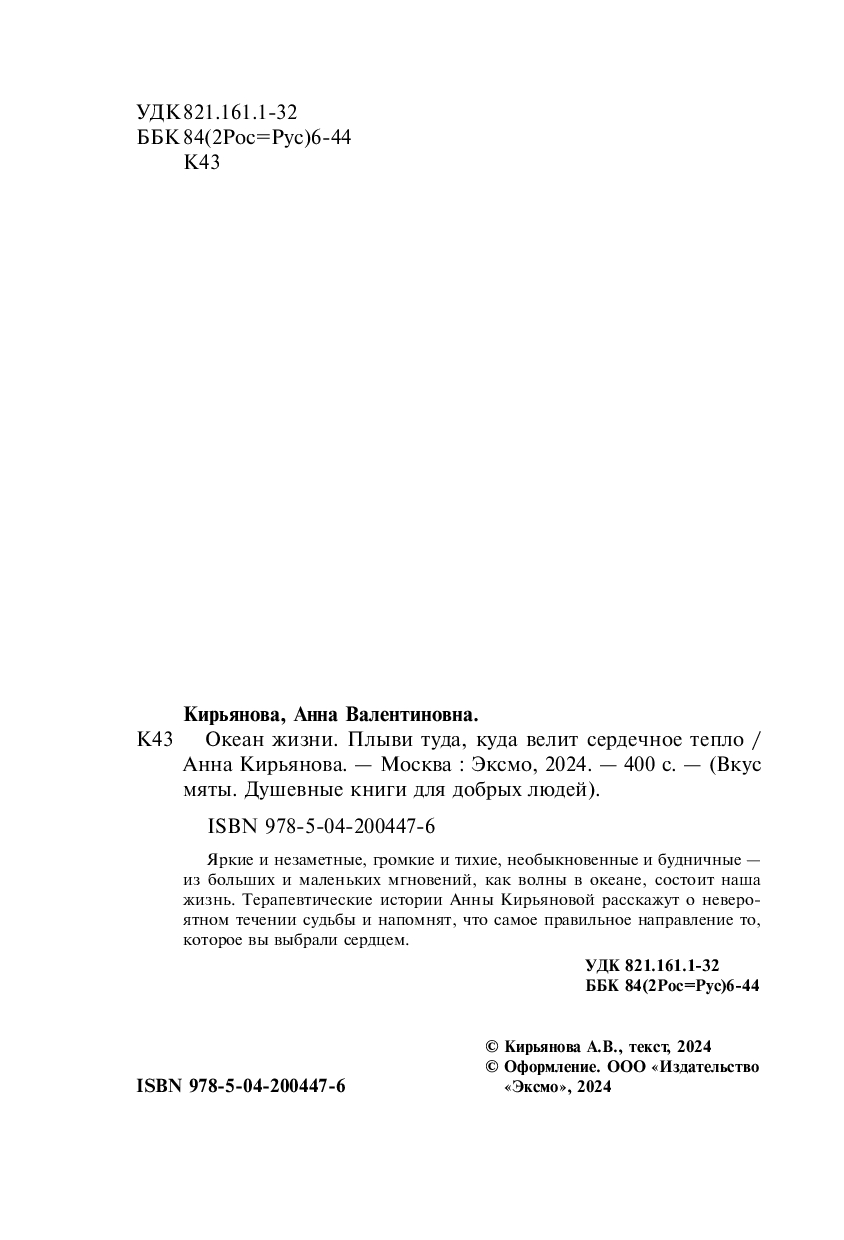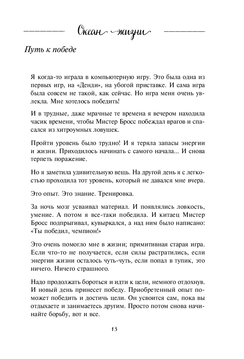 Яркие и незаметные, громкие и тихие, необыкновенные и будничные – из больших и маленьких мгновений, как волны в океане, состоит наша жизнь. Терапевтические истории Анны Кирьяновой расскажут о невероятном течении судьбы и напомнят, что самое правильное направление то, которое вы выбрали сердцем.