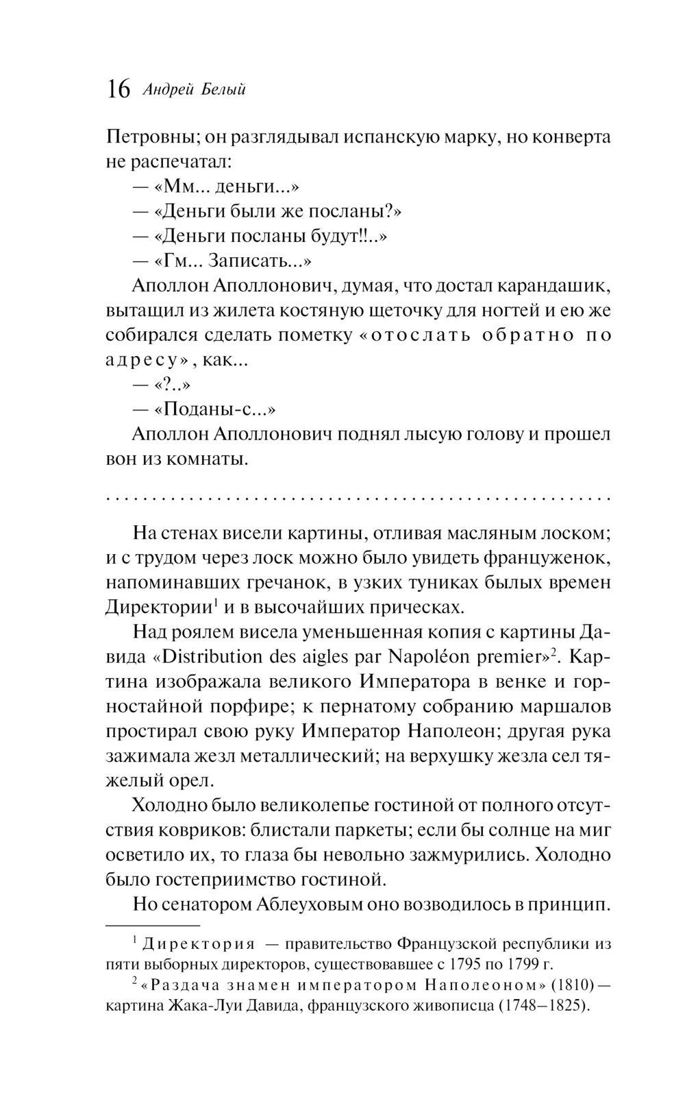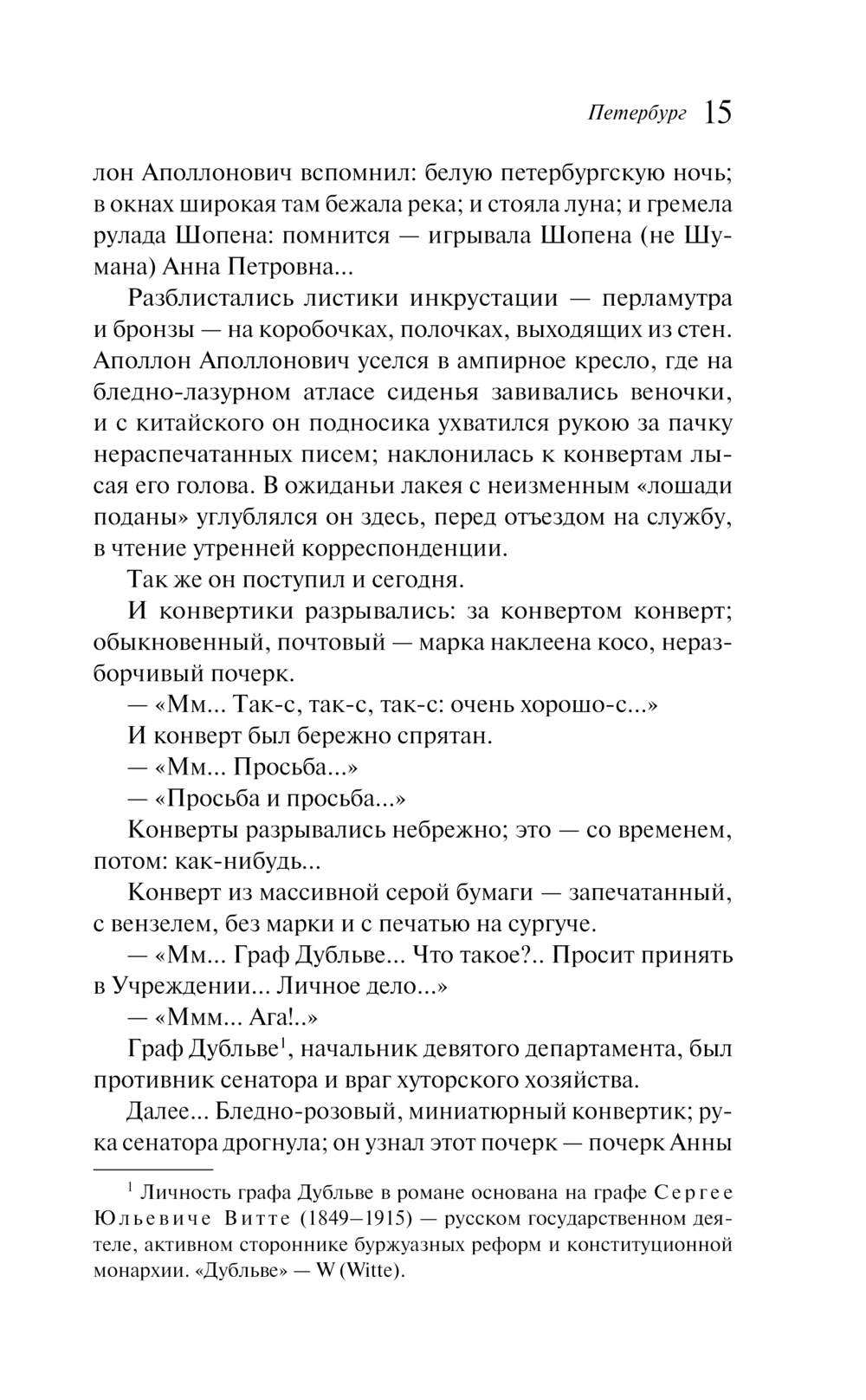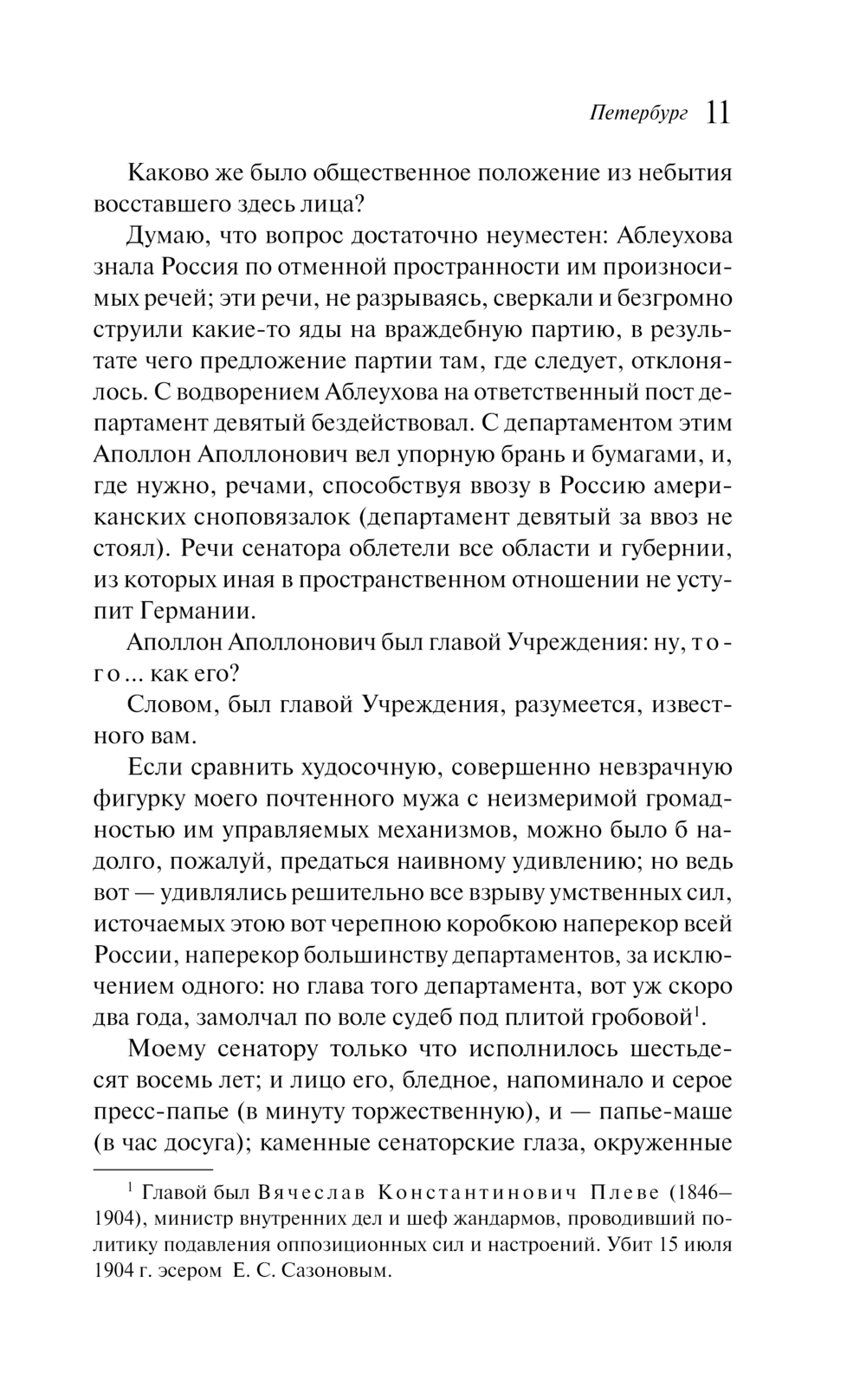 Петербург в одноименном романе – мучительный и завораживающий, город-сон, город-галлюцинация, он же является и главным героем произведения. На фоне величественной архитектуры сталкиваются людские судьбы. Революционеру Николаю Аполлоновичу Аблеухову поручено страшное дело – убить своего отца-сенатора.