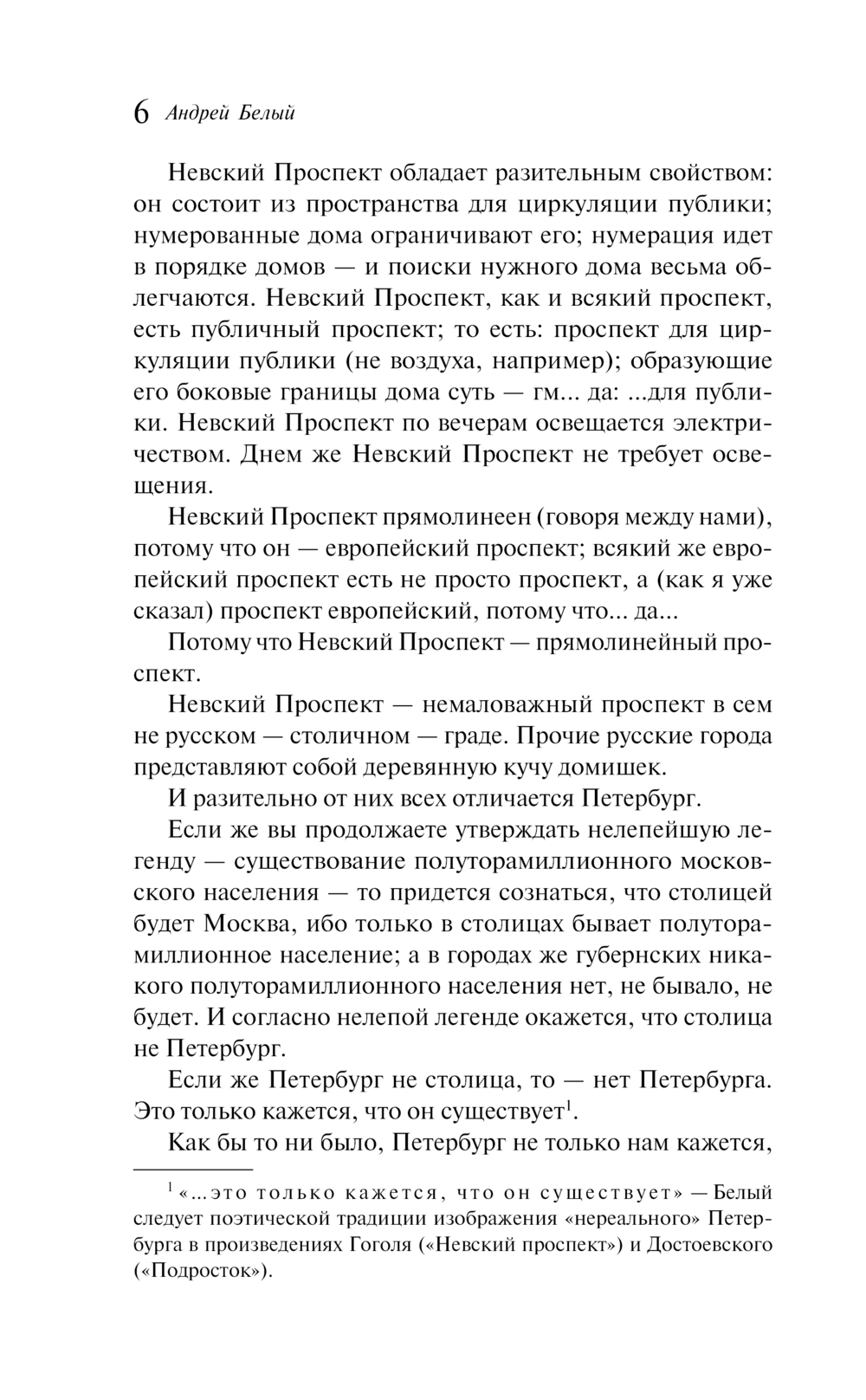 По замыслу автора – это заключительный аккорд мифа о Петербурге, творимого на протяжении целого столетия гениями русской культуры: Пушкиным, Гоголем, Достоевским, Мережковским. Город на Неве описан Белым как символ того шаткого состояния, в каком оказалась Россия в начале XX столетия.