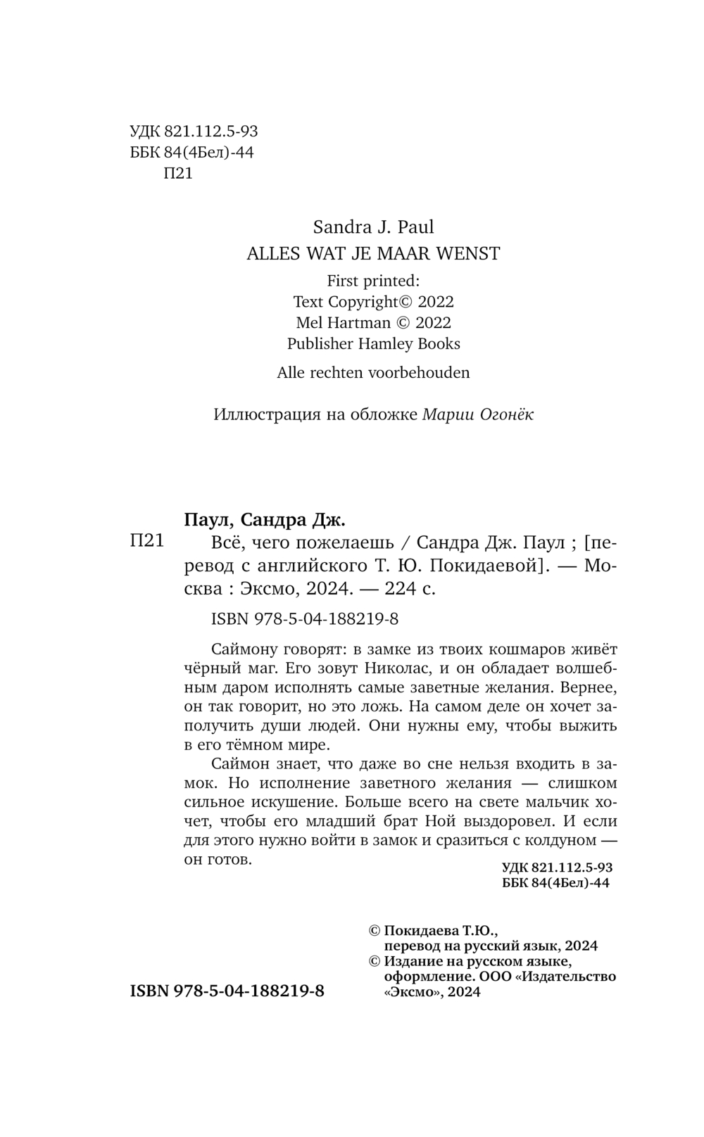 | Название в оригинале | Alles wat je maar wenst (Whatever you wish for) by Sandra J. Paull |