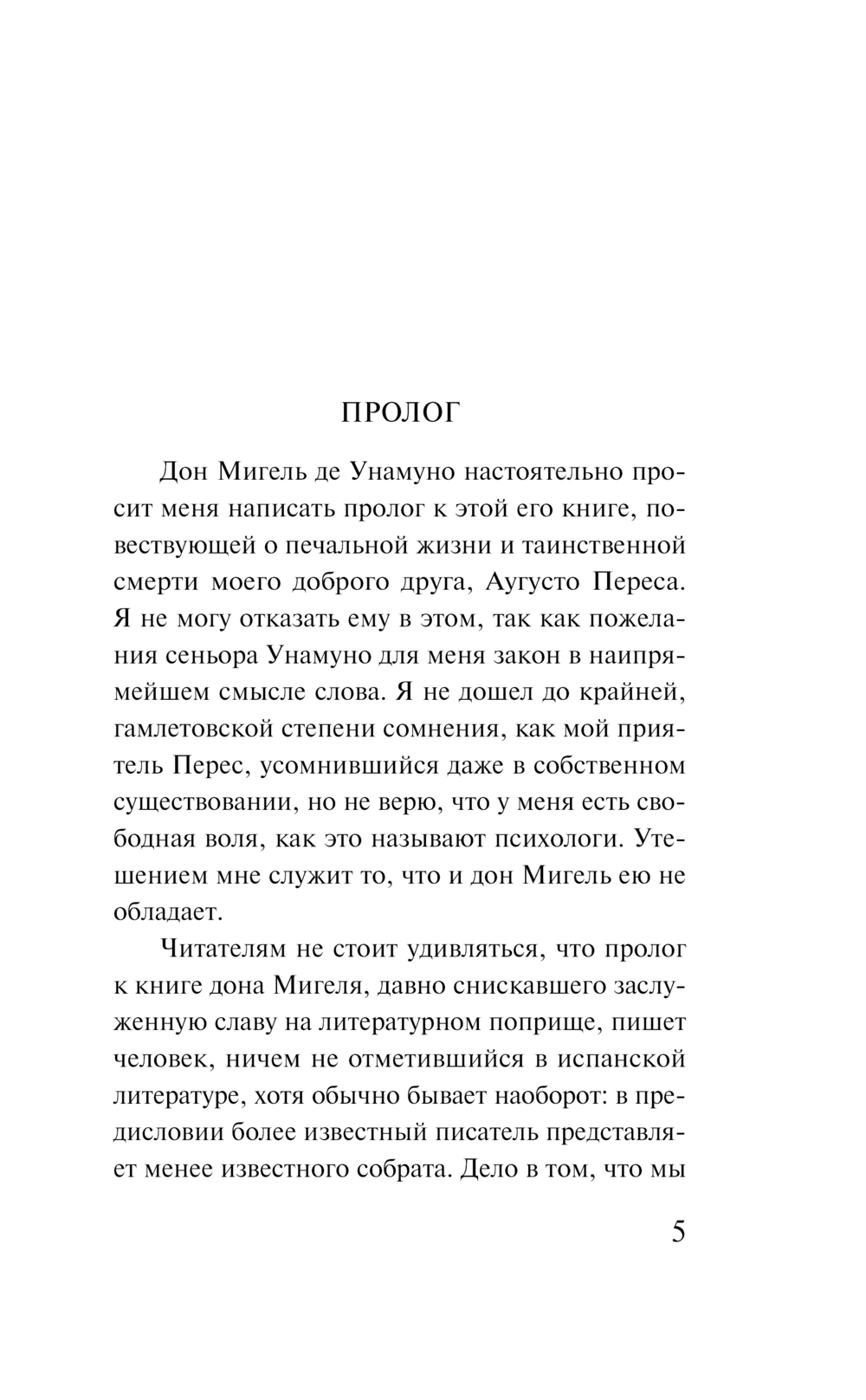 Аугусто, герой рамана, подозревает, что он всего лишь плод фантазии автора, что его жизнь подчинена чужой воле. Свет глаз хорошенькой пианистки вызволяет героя из густого тумана обыденности, но вместе с тем приносит эту роковую мысль. Впрочем, поначалу Аугусто не обращает на нее особого внимания. Все его силы брошены на то, чтобы понравиться своенравной пианистке и отбить ее у жениха. Однако девушка начинает играть чувствами Аугусто. В отчаянье он решает свести счеты с жизнью, но сперва приезжает к своему создателю домой и узнает, что тот собирается его убить...