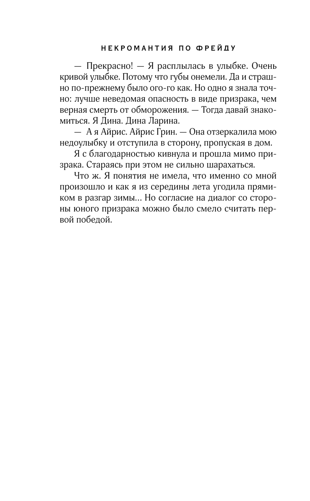 Как же мне понравилась эта книга, мне понравилось всё и стиль автора и сюжет, и конечно герои. Четкая линия сюжета, хорошо раскрытые персонажи даёт нам возможность насладиться этой лёгкой и захватывающей историей. Главная героиня -Дина,попала в другой мир и получила должность некроманта и практику с душами умерших и родственниками усопших.Главный герой-Винсент,сын умершего некроманта .Автор, так умело закручивает сюжет,но всё равно это всё легко читается на одном дыхании. Надо обязательно читать и пройти с героями все тайны, интриги и приключения, чтобы дойти до счастливого финала. Спасибо большое автору за ваш такой заразительный юмор и за такую интересную тему о некромантах -психологах! Только взяла книгу в руки, начала читать и сразу вспомнила анекдот : "— Чего ты боишься? — Темноты и психологов.. — Ну, психологов-то понятно! А темноты почему? — А мало ли сколько в ней психологов!?"