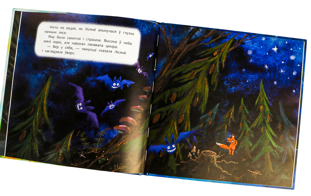 "Вер у сябе!" – фраза, якую Лісянё кажа самому сабе, але здаецца, быццам яе чуе ўвесь свет. І не проста чуе, але і адгукаецца, прыўносячы ўсё больш святла ў падарожжа галоўнага героя: ад месяцовага ззяння, бляску расы і агеньчыкаў светлячкоў да іскраўдабрыні ў вачахнечаканага сябра, цёплых сонечных промняў і роднага голасу.