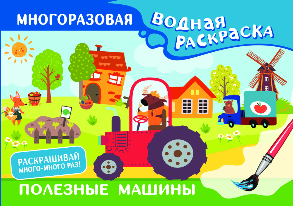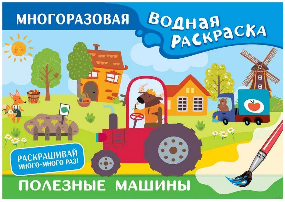 Многоразовая водная раскраска – уникальная раскраска, которая порадует вашего ребёнка! Она не требует использования красок, карандашей или фломастеров. Достаточно окунуть кисточку в воду, провести ей по белой части страницы, и как по волшебству на ней появятся спрятавшиеся герои! Когда картинка высохнет и снова станет белой, ее можно раскрашивать заново. Много-много раз!