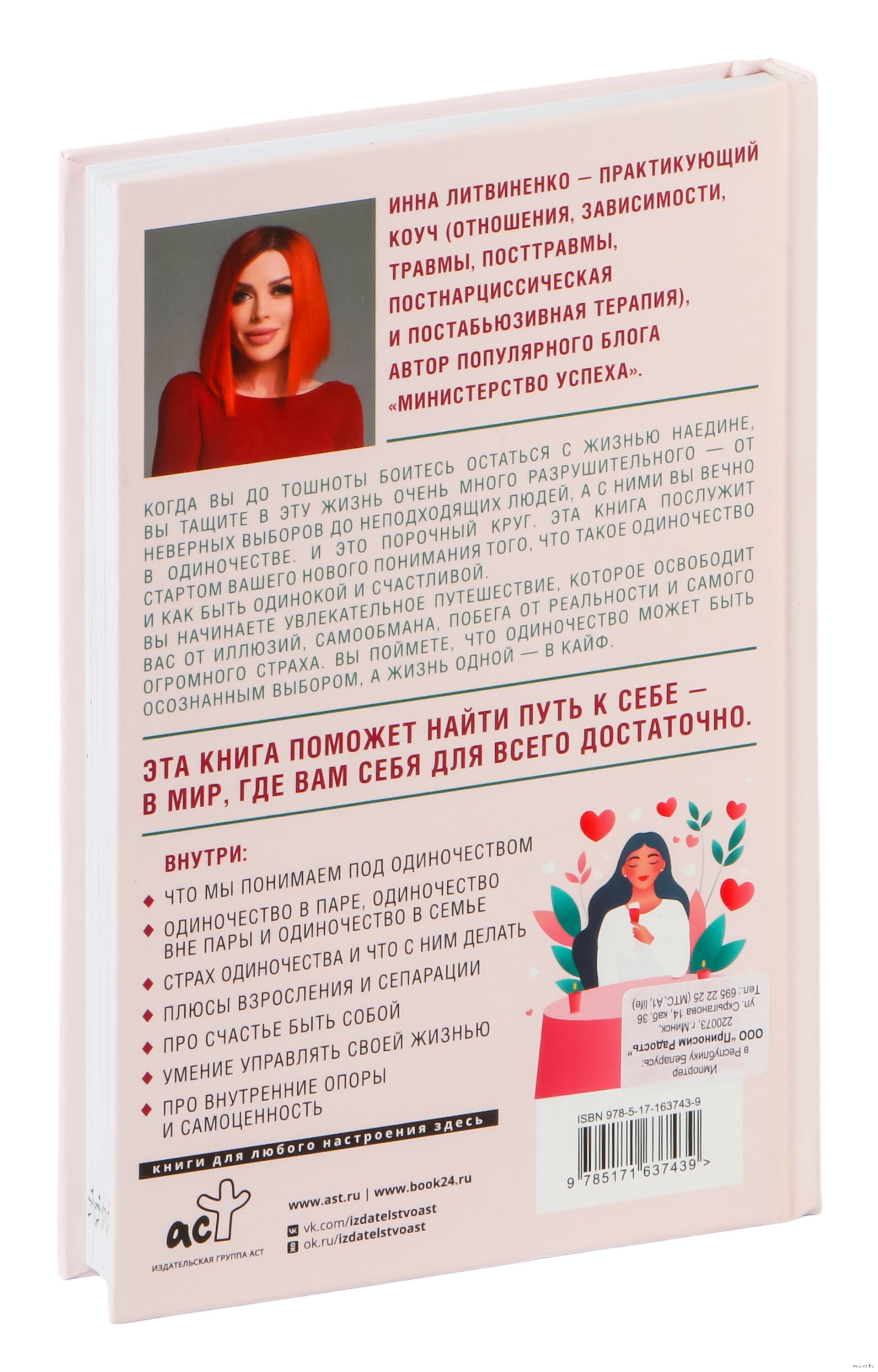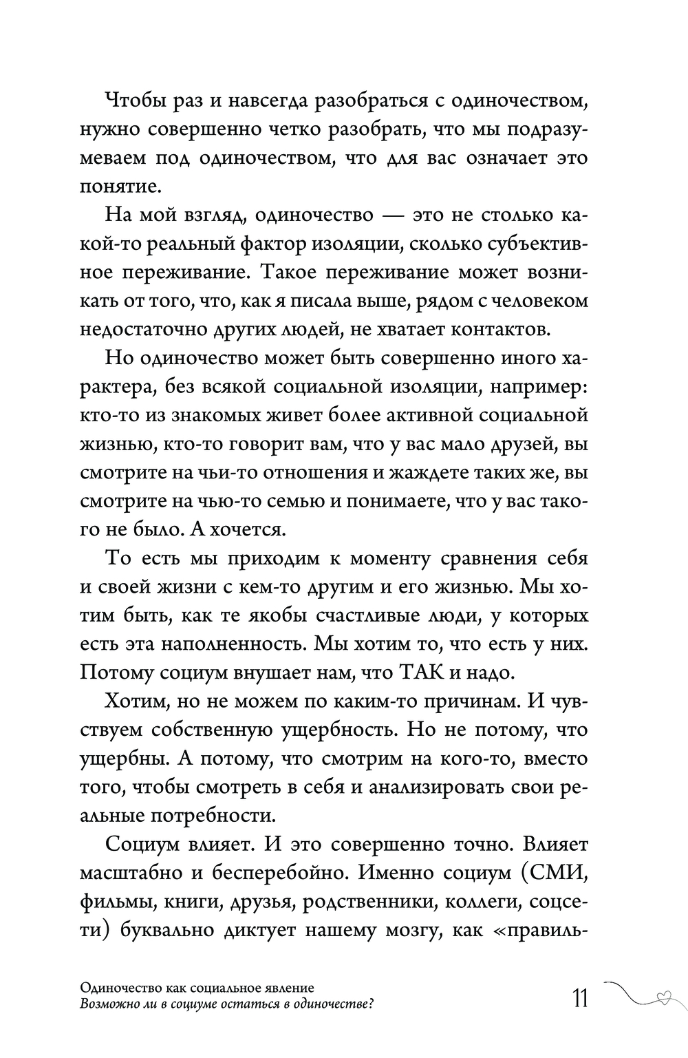 Когда вы до тошноты боитесь остаться с жизнью наедине, вы тащите в эту жизнь очень много разрушительного от неверных выборов до неподходящих людей, а с ними вы вечно в одиночестве. И это порочный круг. Эта книга послужит стартом вашего нового понимания того, что такое одиночество и как быть одинокой и счастливой.