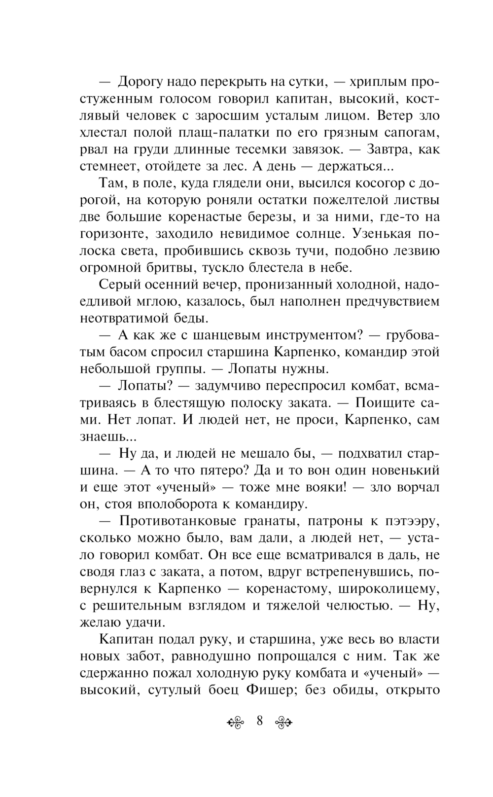 В книгу вошло две его повести. Герои "Сотникова" – двое участников партизанского отряда, отправившись на поиски провизии, они попадают в плен к немецким полицаям. Раненного, но несгибаемого Сотникова приговаривают к смерти, а привести казнь в исполнение приказывают его товарищу Рыбаку.