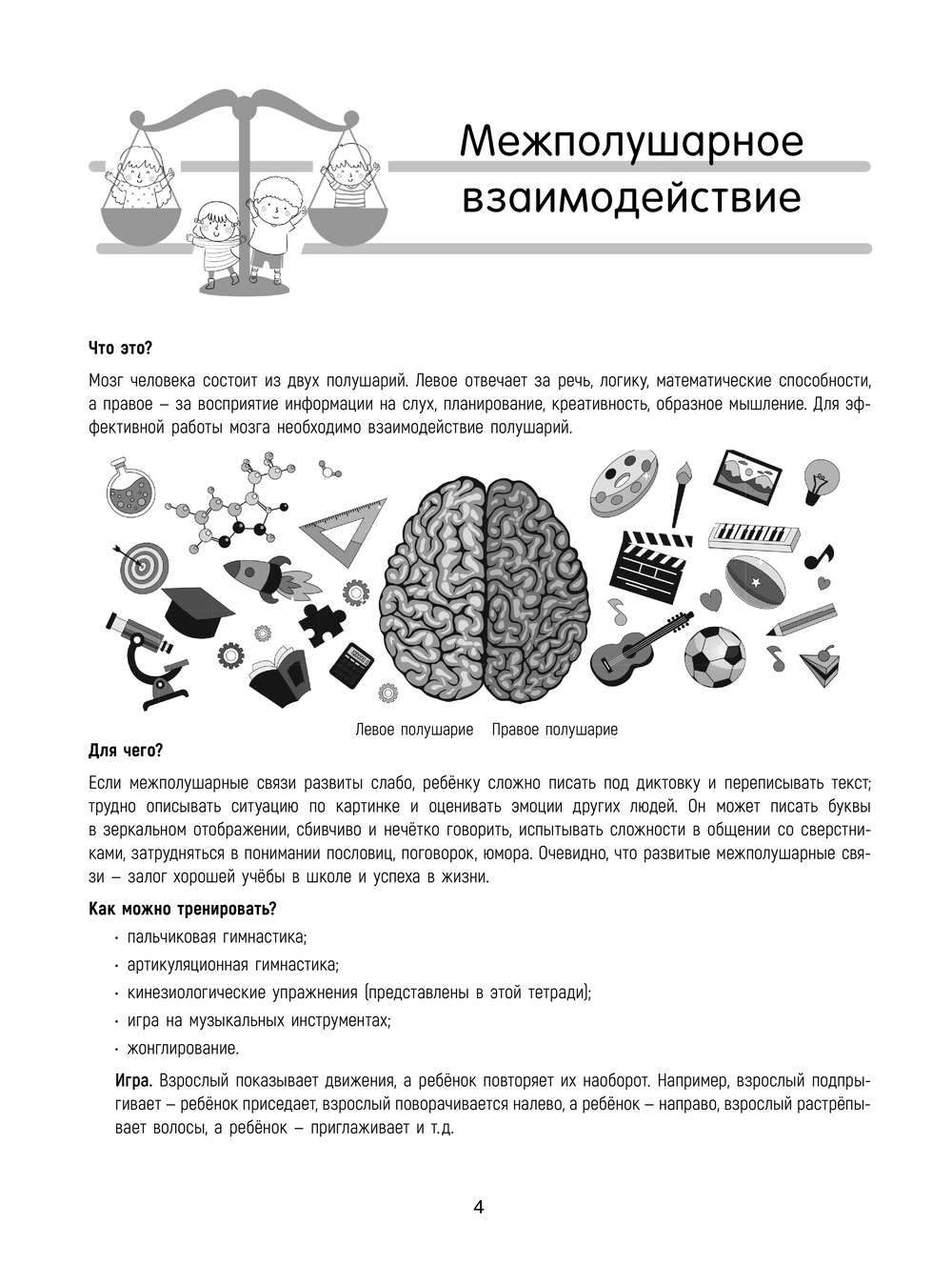 На страницах большой тетради-тренажёра "Нейропрописи для развития мозга" – интересные и полезные задания, которые помогут детям-дошкольникам развить интеллект, память и внимание, подготовить руку к письму, выработать усидчивость. Все упражнения выполняются двумя руками одновременно – таким образом ребёнок развивает нейромоторную координацию, межполушарное взаимодействие. Нейропрописи одинаково эффективны для занятий с праворукими детьми и с теми ребятами, чья ведущая рука – левая.