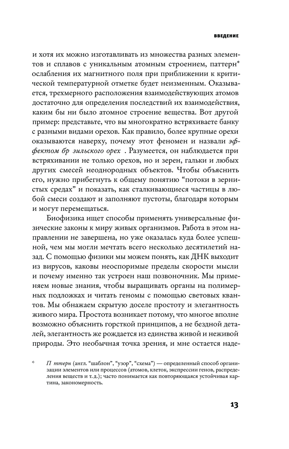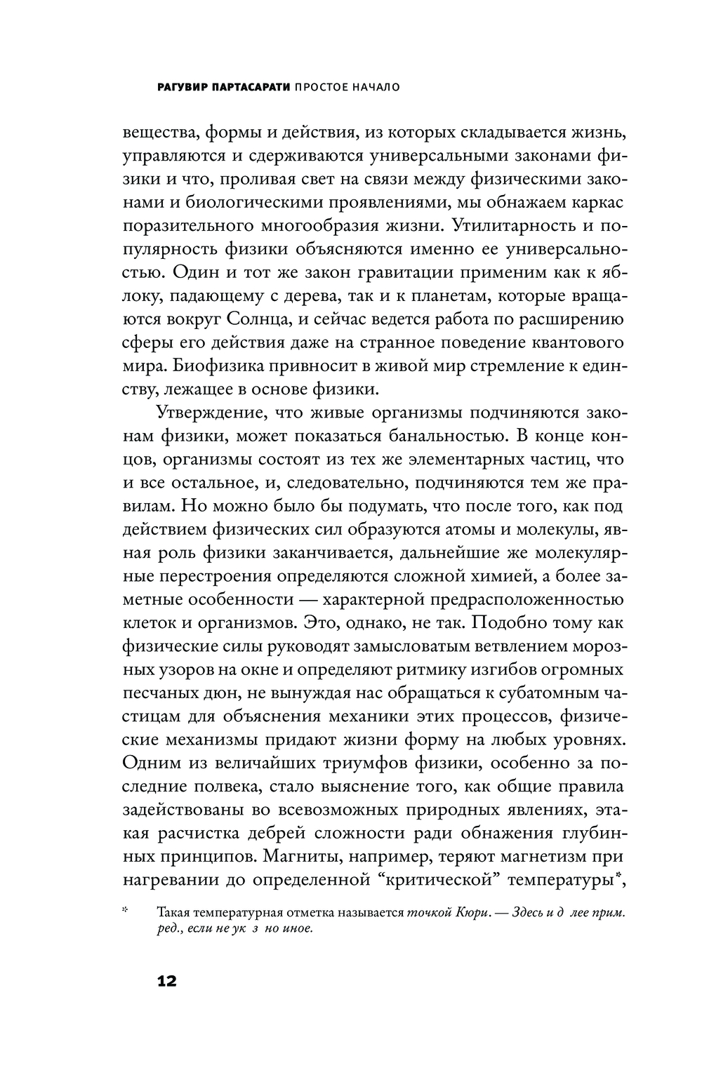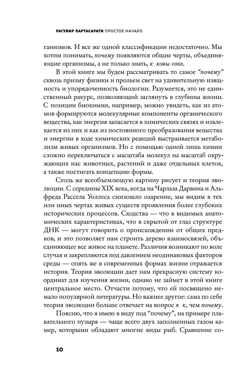 Биофизик Рагувир Партасарати объясняет, как четыре физических принципа – самосборка, регуляторные схемы, предсказуемая случайность и масштабирование – определяют структуру и поведение биологических систем, от укладки молекул белка и активности генов до судьбы бактерий в кишечном сообществе. Эти закономерности лежат в основе всего многообразия живой природы и позволяют развивать немыслимые прежде биотехнологии. Действие физических правил автор разбирает на массе примеров, включая упаковку вирусной ДНК, устройство мембран, закладку плана тела в эмбриогенезе, органы на чипе, редактирование генома, прионные болезни и муковисцидоз.