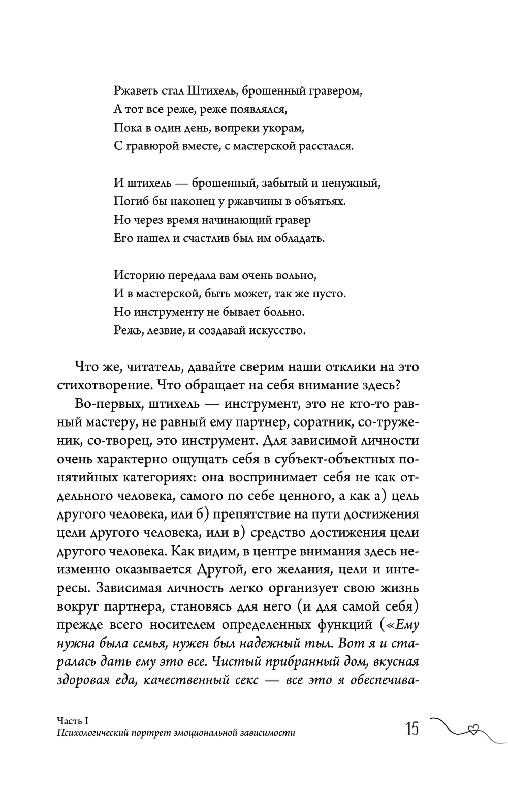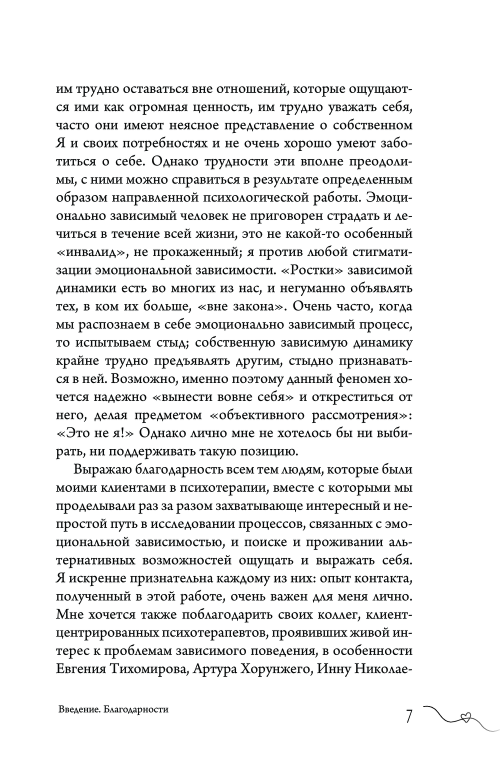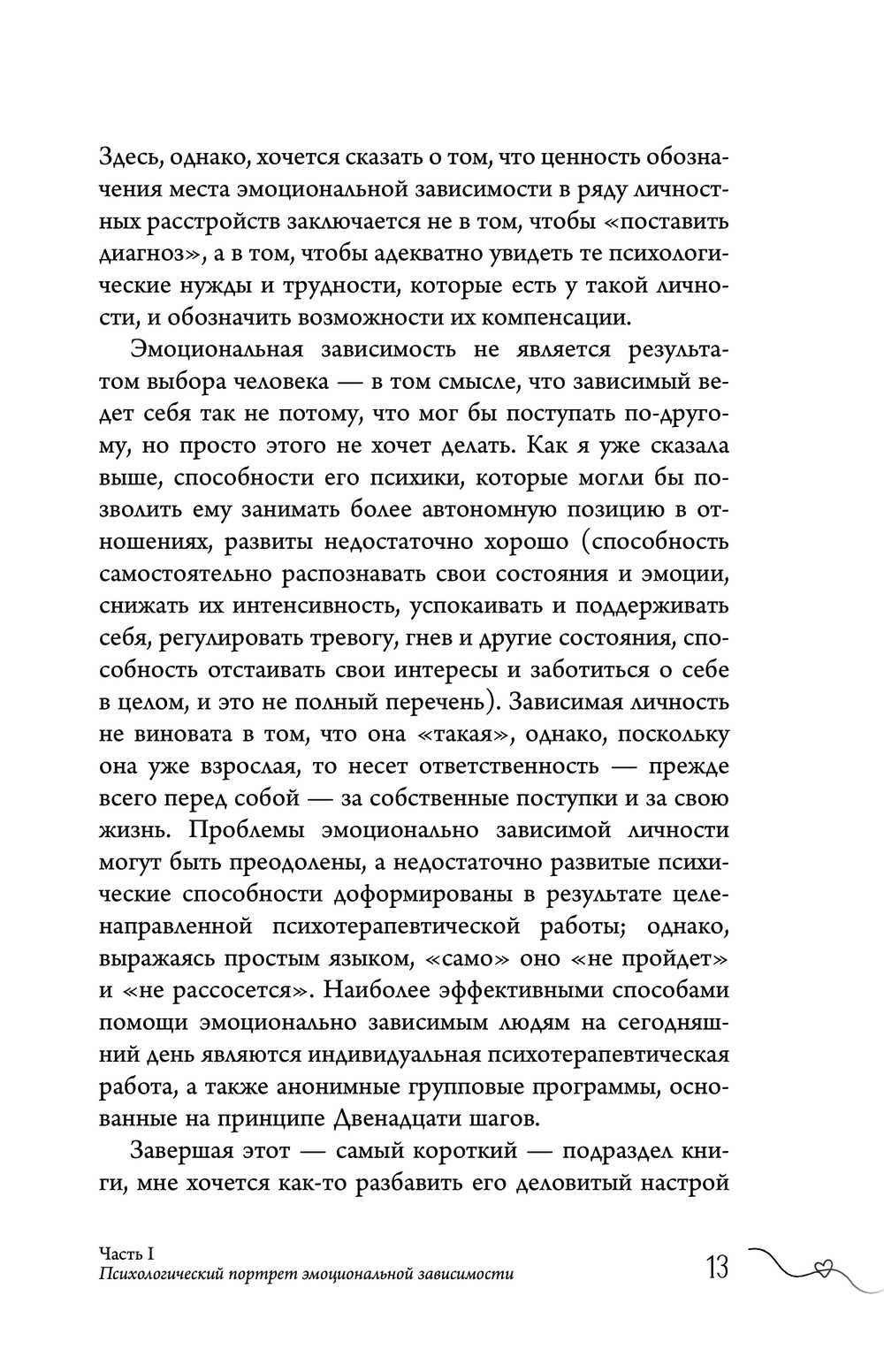 Эта книга поможет понять, что эмоциональная зависимость – это травма развития, а совсем не повод для самобичевания и отчаяния. Ни один человек не сможет вам сказать, что для вас хорошо и правильно. И подходящее решение – научиться слышать и защищать себя, доверять себе. Попробуйте обустроить cвою жизнь так, чтобы внутри вас появилось особое пространство – тот уютный "домик", в котором будет тепло, спокойно и безопасно!