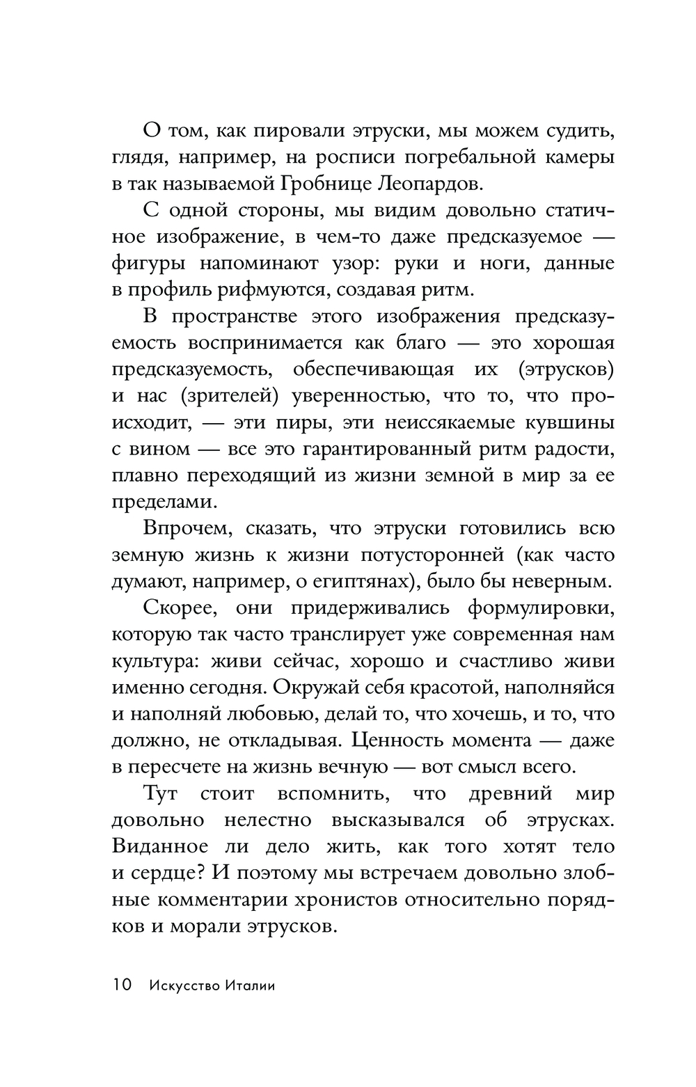 Италия для большинства людей – синоним искусства как такового, а имена титанов Возрождения первыми приходят на ум любому, даже неискушенному любителю прекрасного. Но итальянское искусство – это не только Леонардо, Рафаэль и Микеланджело, это огромный, многоликий мир, особая лаборатория красоты и гармонии, в которой в течение многих веков формировался европейский эстетический идеал. Об истории и основных процессах, о художниках, архитекторах и скульпторах и, конечно, о секретных ингредиентах культуры, делающих ее узнаваемой и самобытной, вы узнаете из этой книги.
