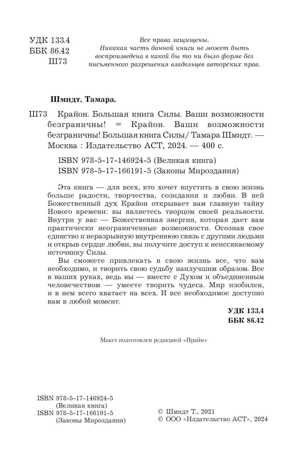 В этой книге Божественный дух Крайон открывает вам главную тайну Нового времени: вы являетесь творцом своей реальности. Внутри у вас – Божественная энергия, которая дает вам практически неограниченные возможности. Осознав свое единство и неразрывную внутреннюю связь с другими людьми и открыв сердце любви, вы получите доступ к неиссякаемому источнику Силы.