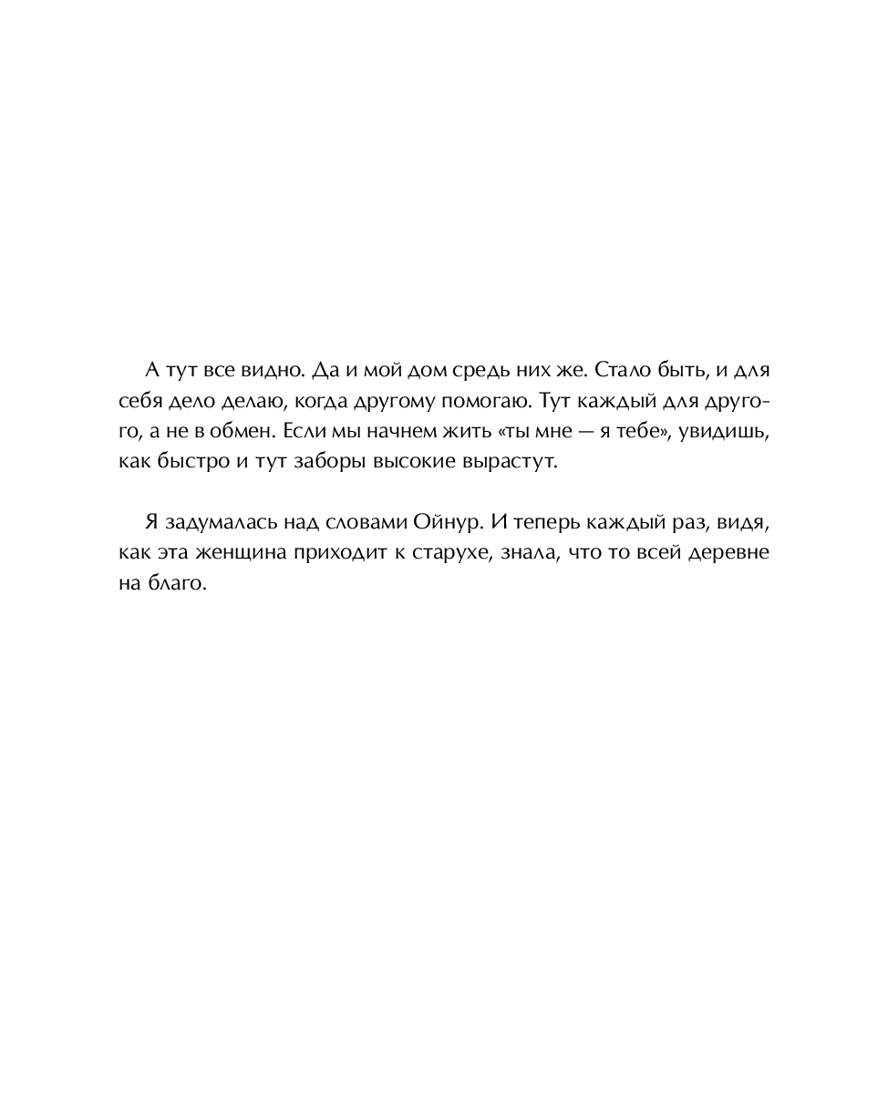 Как песнь ветра, которой всегда нужны простор и тишина, чтобы быть услышанной, так и слова старухи Ойнур звучат между строк о том, что происходит между нами и внутри нас, обнимая и поддерживая в трудные минуты.