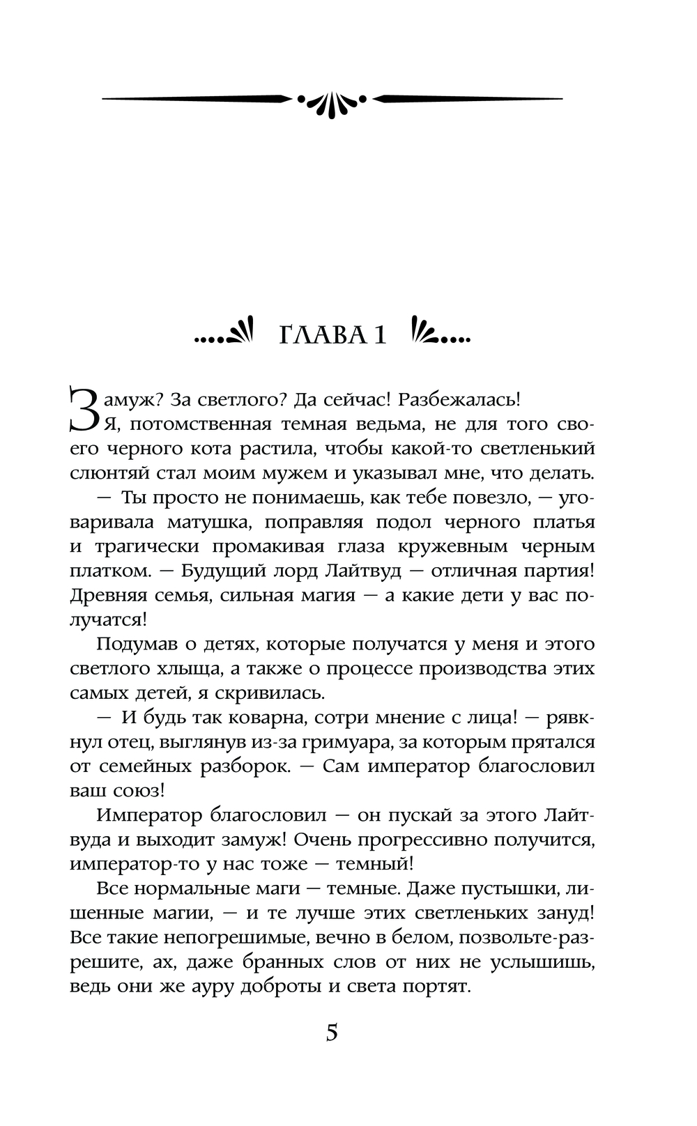 Замуж? За светлого? Меня, потомственную темную ведьму? Да вы затейники... Жених сбежит, сверкая пятками, спустя минуту после помолвки! Тем более – тихоня, сын лорда Лайтвуда. Его отец – вот, кого стоит бояться и обходить стороной. Могущественный и опасный светлый маг, ректор столичной академии, чье имя до сих пор снится мне в кошмарах. После свадьбы мы станем родней?! Ну уж нет. Отделаться от руки и сердца его сына теперь – дело принципа. Стоп. То есть как – жених не сын?! Лорд Лайтвуд, вы шутите? Свадьбы не будет!