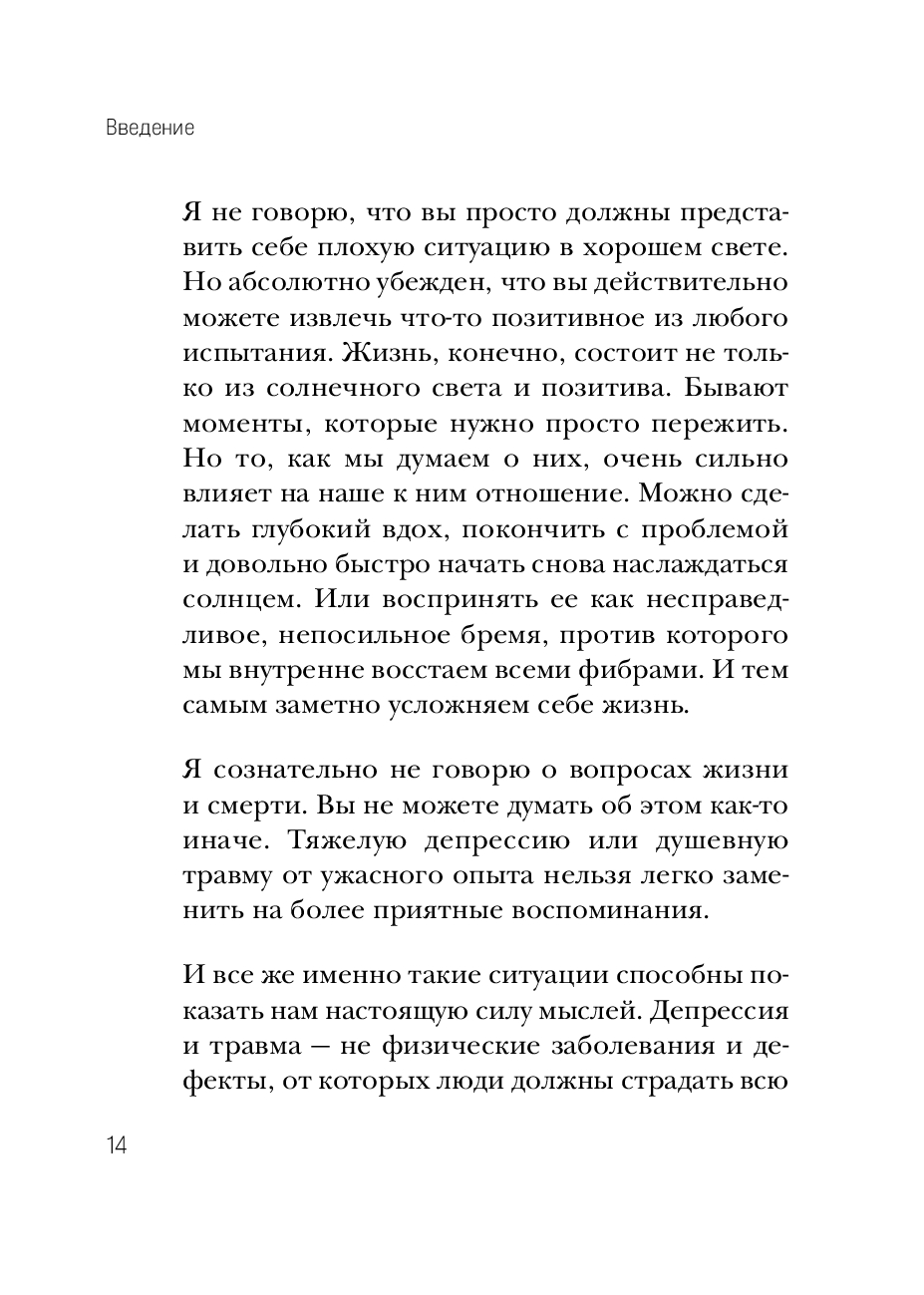 Он пришел к выводу, что перенастройка мышления напрямую влияет на наше восприятие травмирующих и болезненных событий. Запрограммировав свой мозг, каждый человек сможет легче переживать любые потрясения.
