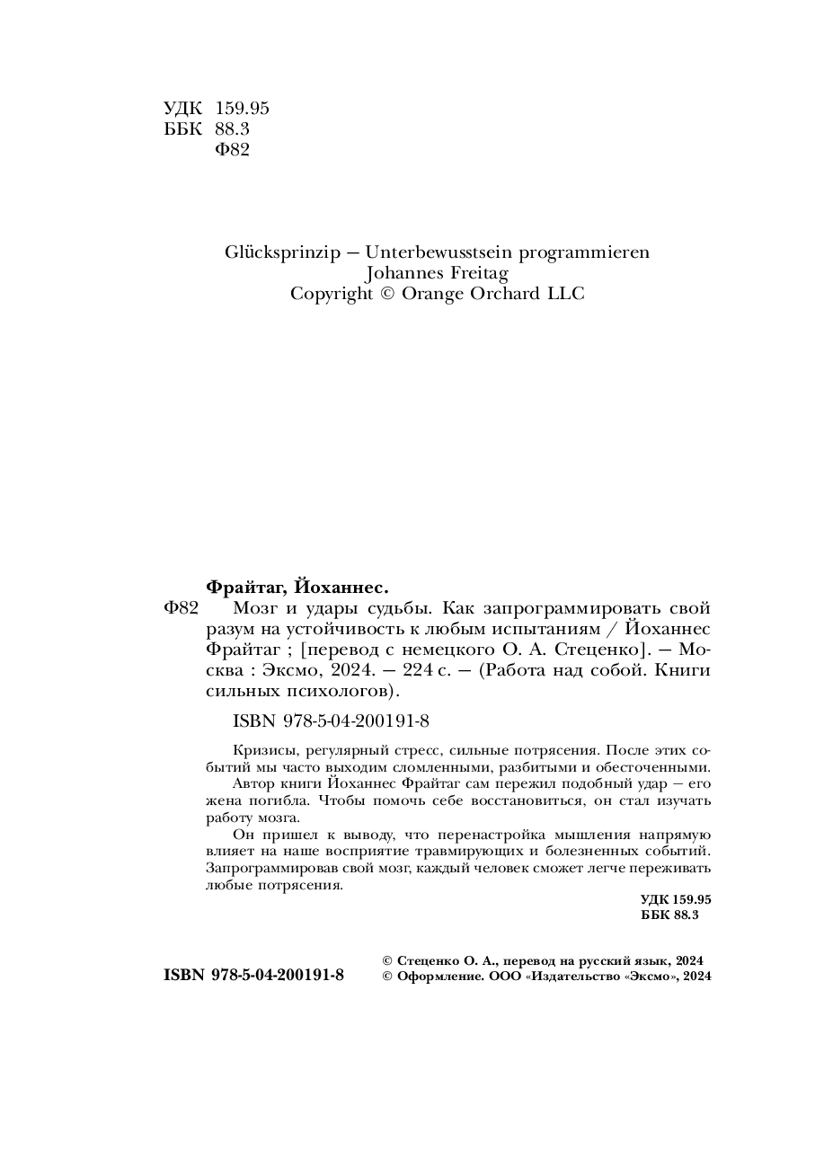 | Название в оригинале | Glücksprinzip – Negative Gedanken loswerden: Mit diesen 10 ungeahnt effektiven Methoden Grübeln stoppen und dein quälendes Gedankenkarussell anhalten |