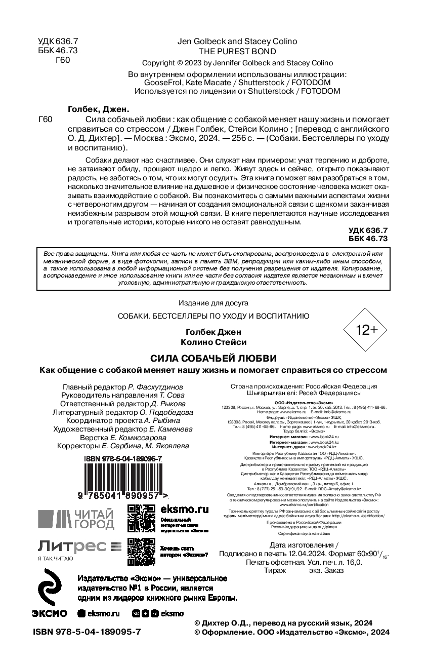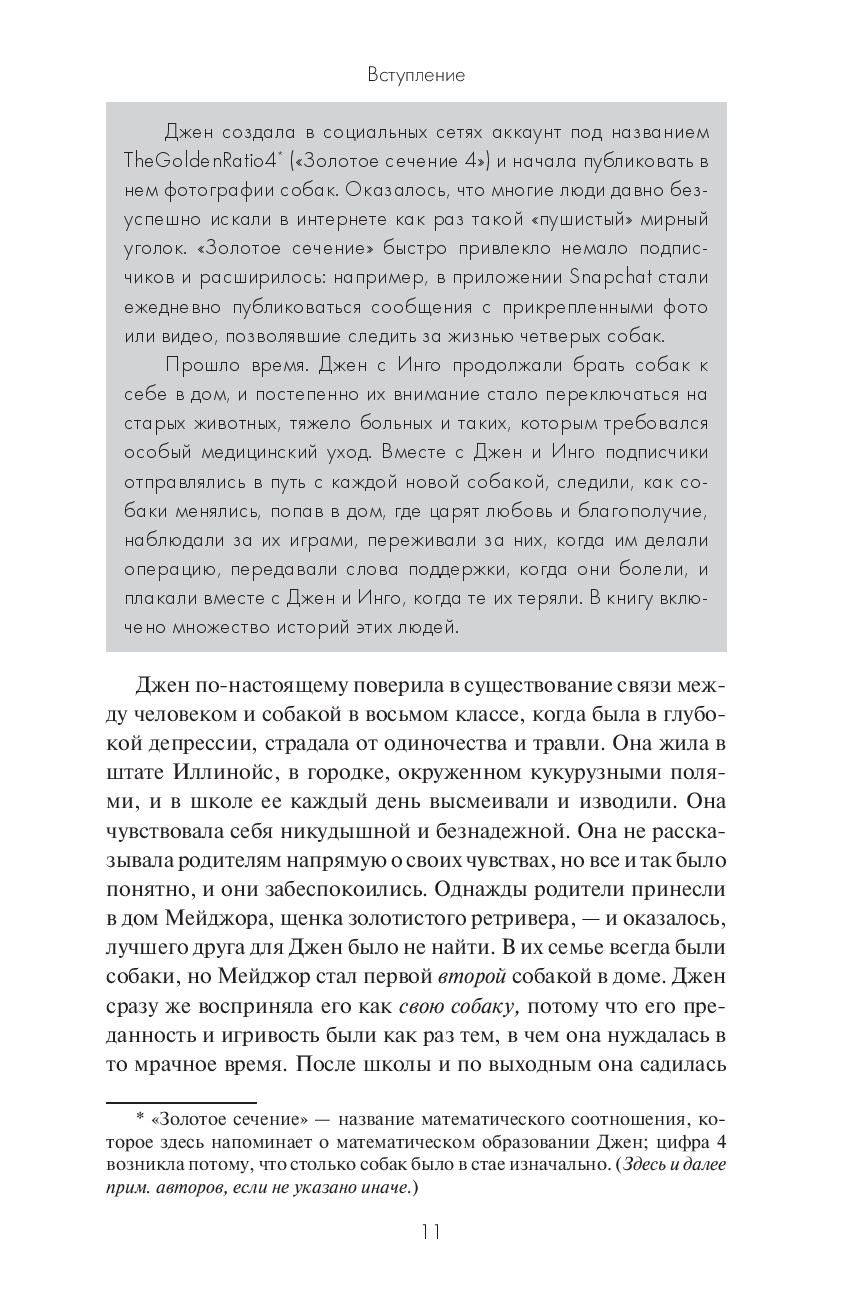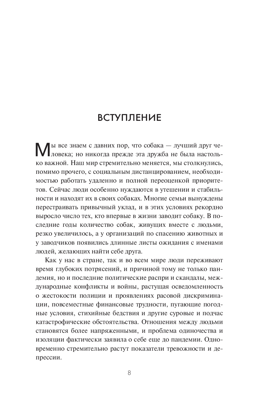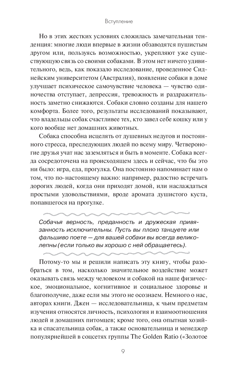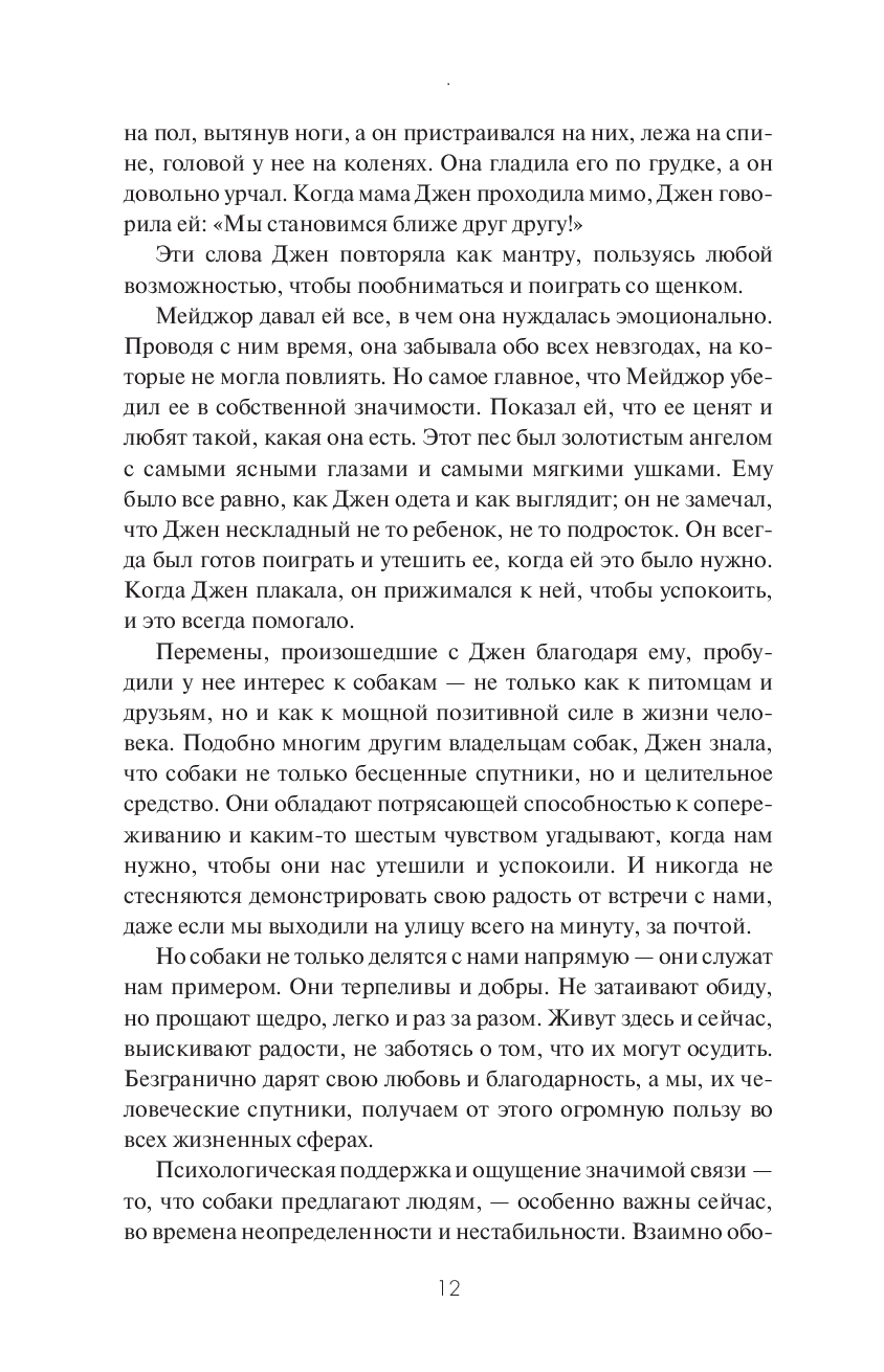 Книга написана американскими специалистами в области психологии и взаимоотношения людей и домашних питомцев. Они собрали результаты передовых исследований, доказывающих, что собаки улучшают не только наше эмоциональное состояние, но и физическое здоровье: снижают кровяное давление, облегчают хронические боли, смягчают реакцию на стресс, помогают привести себя в форму и даже распознают ранние признаки болезней. Помимо новаторских исследований, в книге присутствуют трогательные реальные истории людей, которым собаки помогли пережить горе, справиться с жизненными сложностями, ощутить безграничную преданность и любовь.