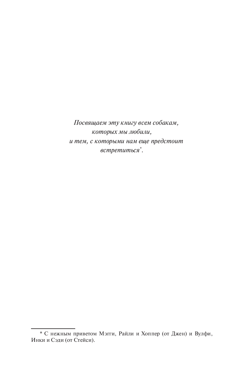 Собаки делают нас счастливее. Они служат нам примером: учат терпению и доброте, не затаивают обиду, прощают щедро и легко. Живут здесь и сейчас, открыто показывают радость, не заботясь о том, что их могут осудить. Безгранично дарят свою любовь и благодарность.