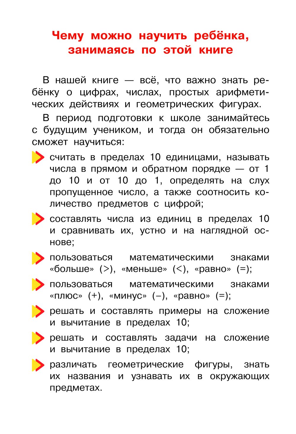 Пособие для будущих первоклассников "Математика. Развиваем способности" – всё, что важно знать ребёнку о цифрах, числах, простых арифметических действиях и геометрических фигурах. В книге собрано множество увлекательных заданий, которые помогут дошколятам шаг за шагом познакомиться с цифрами и потренироваться их писать, освоить счёт до десяти, выучить состав числа, сравнивать числа и предметы, решать примеры и задачи на сложение и вычитание, запомнить названия геометрических фигур, различать фигуры по форме, цвету и размеру. Это идеальный вариант для развития логики, памяти, внимания, мышления и вычислительных навыков ребёнка. Пусть играет, считает, узнаёт новое!