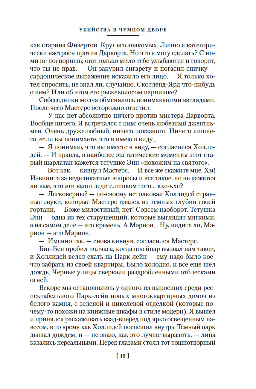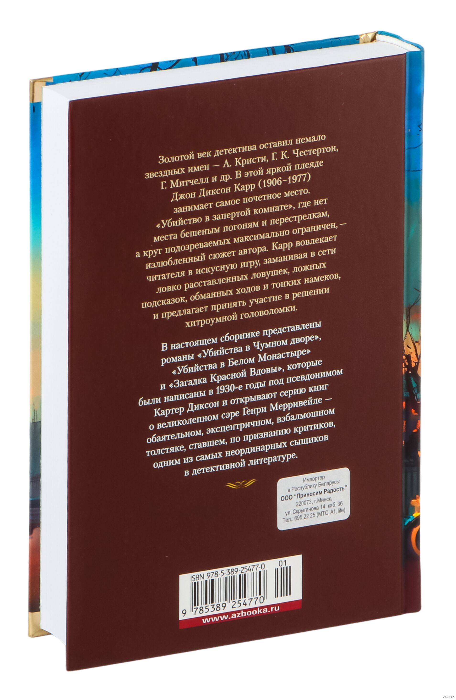 В настоящем сборнике представлены романы "Убийства в Чумном дворе", "Убийства в Белом Монастыре" и "Загадка Красной Вдовы", которые были написаны в 1930-е годы под псевдонимом Картер Диксон и открывают серию книг о великолепном сэре Генри Мерривейле – обаятельном, эксцентричном, взбалмошном толстяке, ставшем, по признанию критиков, одним из самых неординарных сыщиков в детективной литературе.