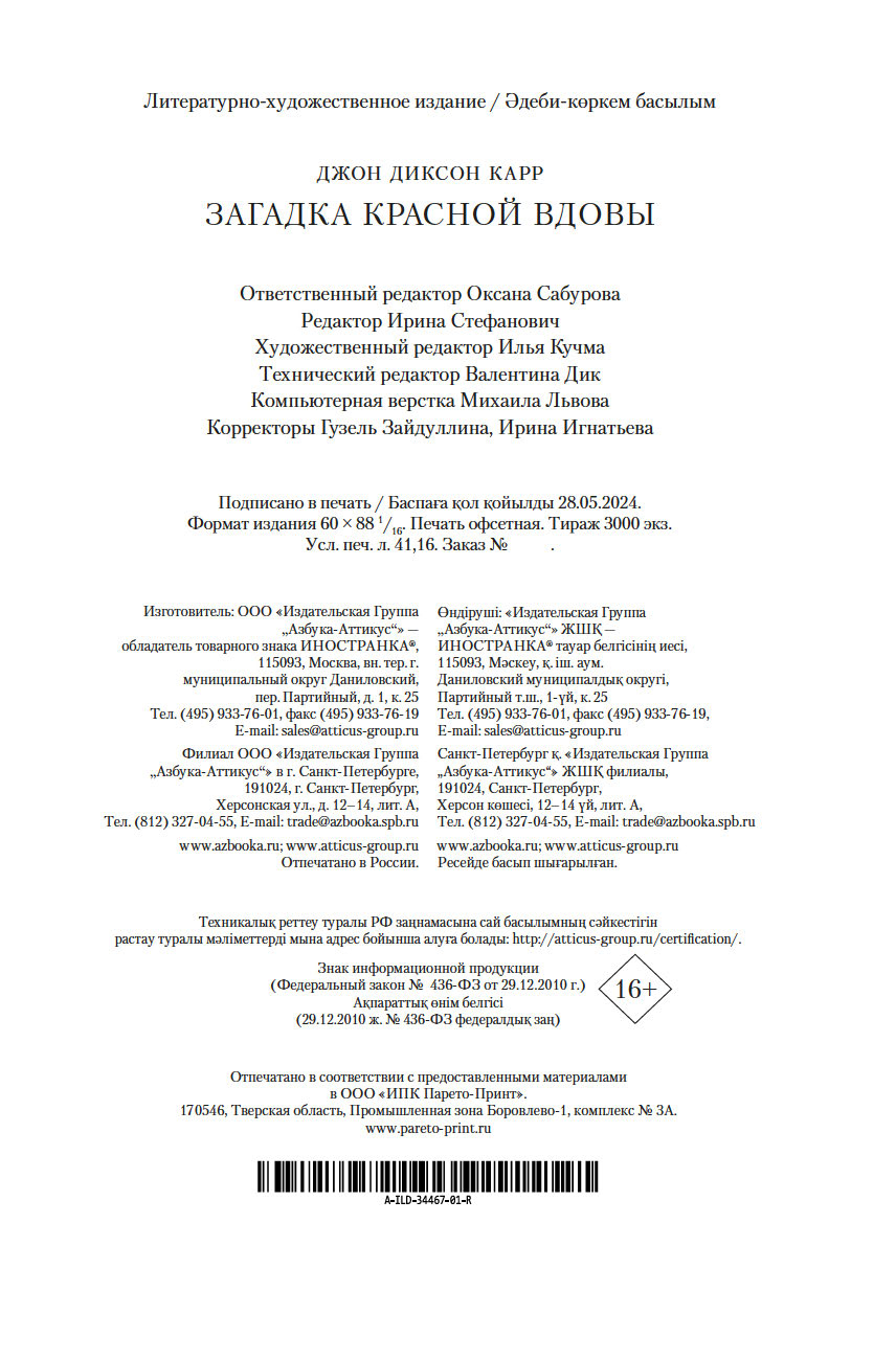 | Изготовитель | ООО "Издательство "Иностранка". 109017, РФ, г. Москва, ул. Пятницкая, 41 |