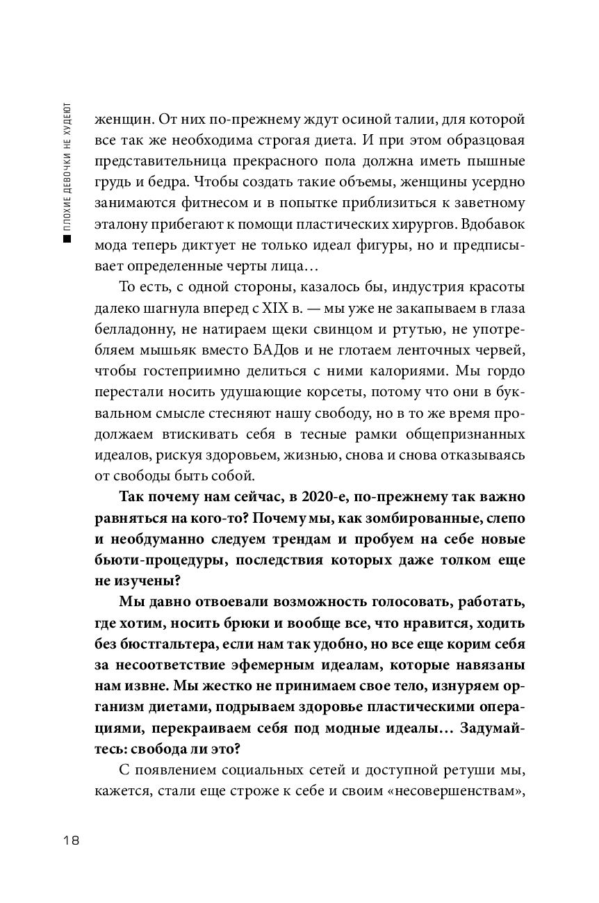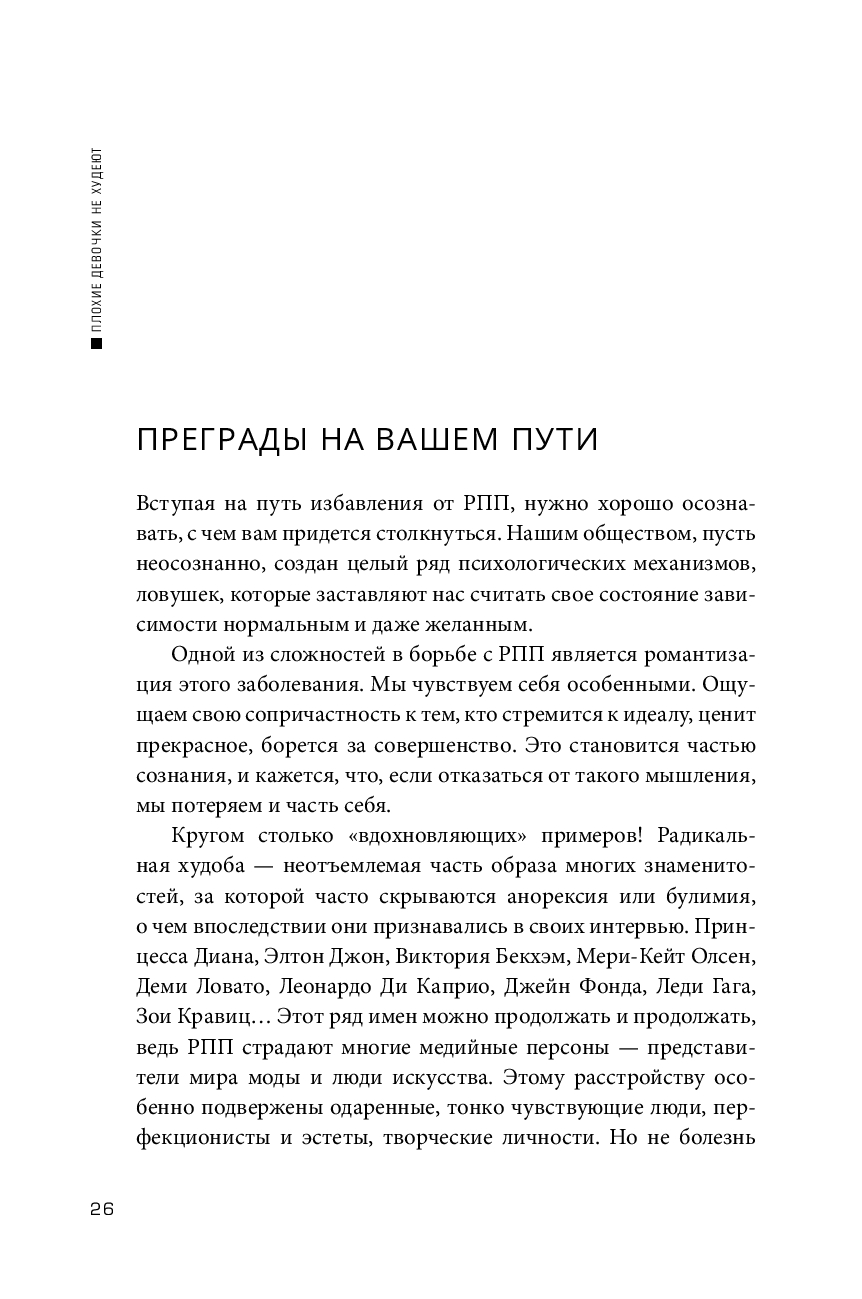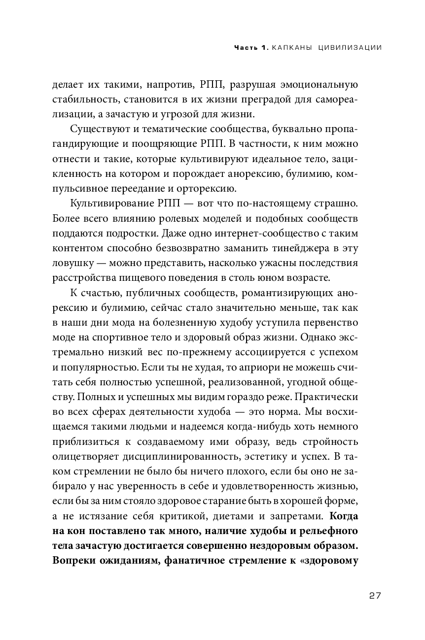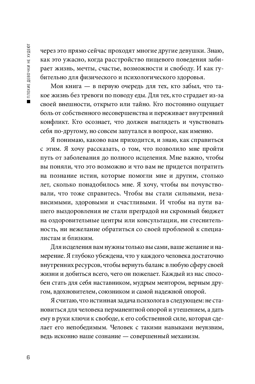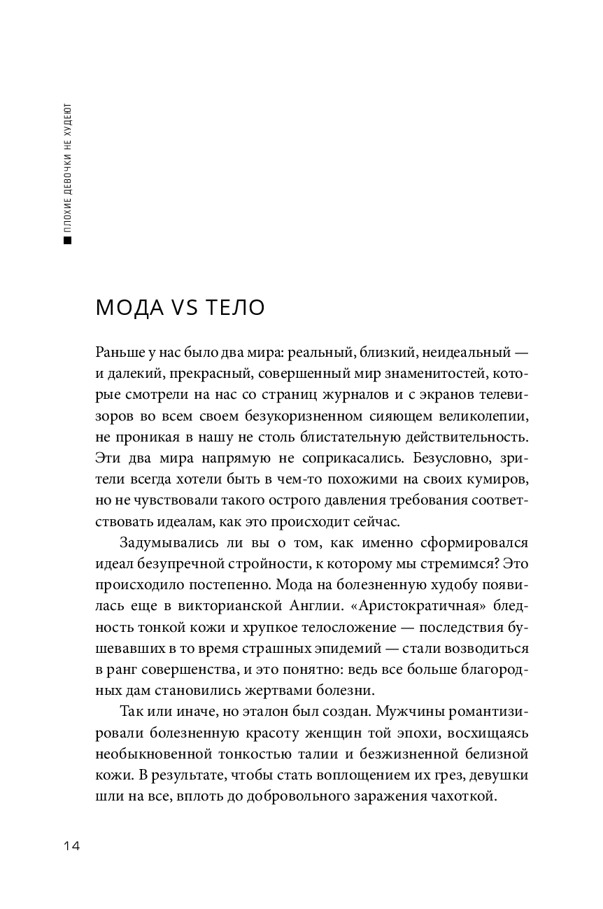 Наше тело от природы совершенно, и вмешательство в его работу может быть губительным. Отказ от веры в себя и подчинение маркетинговым трендам лишь усугубляют чувство безысходности. Почему, несмотря на активно навязываемые идеалы, женщины продолжают бороться за стройность? София отвечает на этот и многие другие вопросы, доказывая, что чрезмерная строгость к себе часто ведет к психическим расстройствам, формируя зависимость от еды и маниакальное желание похудеть.