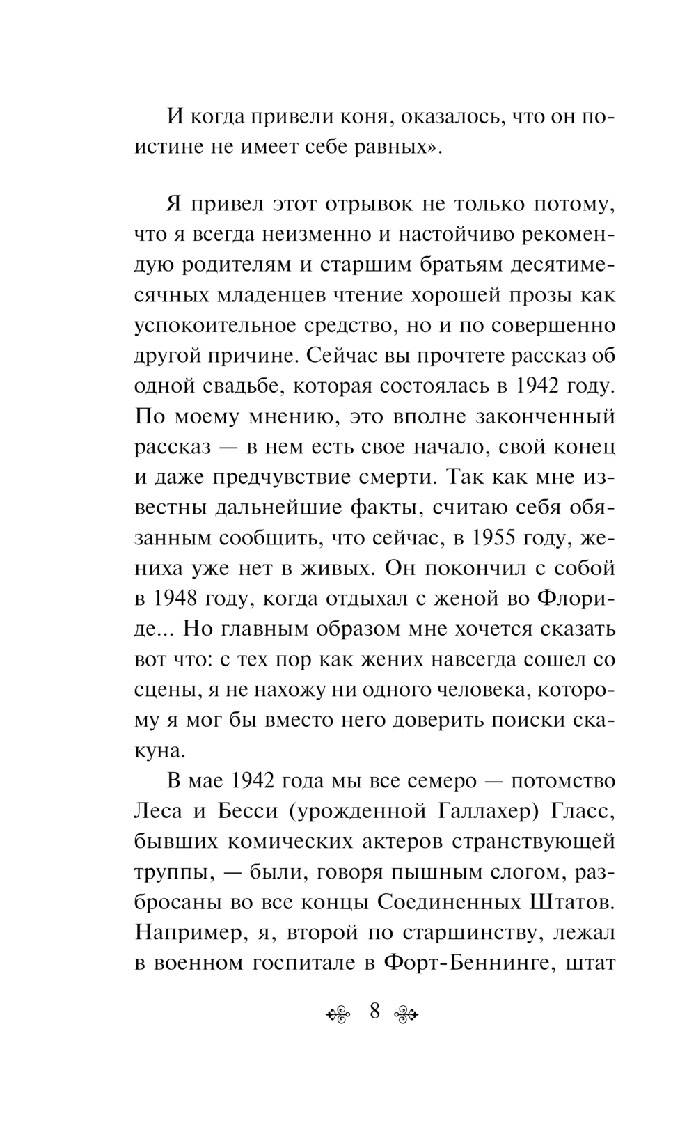 Симор Гласс – старший из семи братьев и сестер. Для тех, кто с ним мало знаком, это странный, неуравновешенный человек. И только близкие знают другого Симора – философа, поэта, человека глубокого и тонко чувствующего.