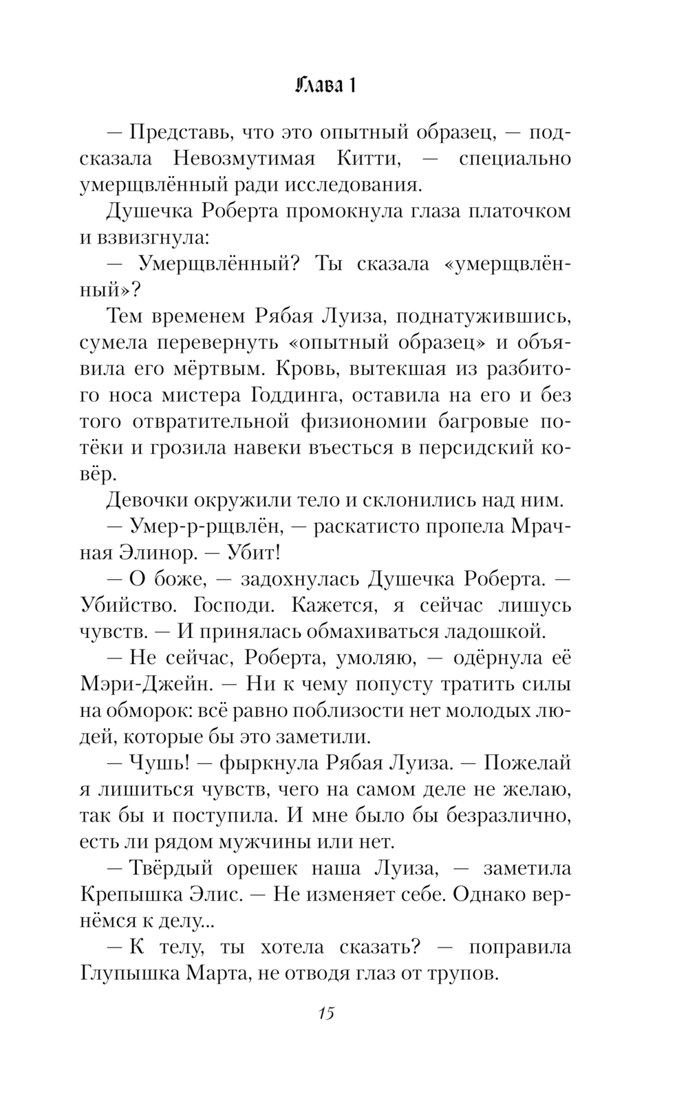В закрытой школе для девочек произошло преступление! Чудесным майским днём во время воскресного обеда замертво упали директриса и её брат. Семеро воспитанниц понимают, что миссис Плакетт и мистера Годдинга отравили, но кто?! И ведь если об этом узнают соседи, то школу наверняка закроют, а девушек отправят по домам. А тем временем в школу один за другим очень некстати прибывают посетители (например, влюбленный в директрису адмирал!). Поэтому девушки решили сделать вид, что ничего не произошло и скрыть преступление. К тому же оказалось, что финансовые дела директрисы совсем плохи. Так на какие средства содержалась школа?! И кто всё-таки убийца? Каждая из школьниц талантлива по-своему, объединив усилия, они берутся за расследование.