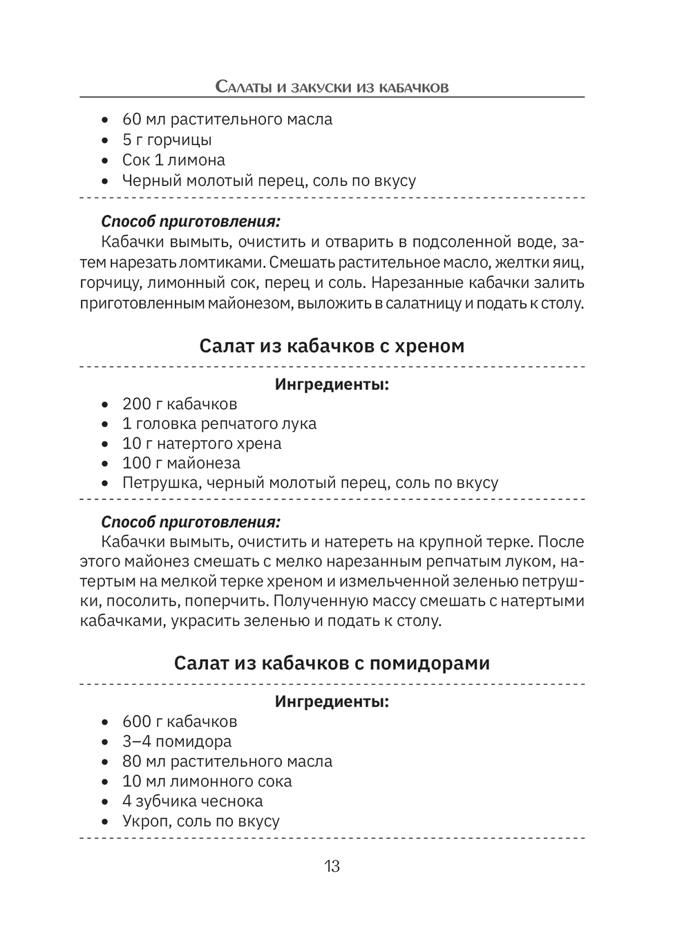 В этой книге собраны лучшие рецепты из кабачков, каждый из которых приятно удивит вас и ваших домашних. С ней вы попробуете много новых блюд, которые разнообразят ежедневное и праздничное меню, а также узнаете секреты приготовления вкусной и здоровой еды из кабачков, которая поможет сохранить ваше здоровье.